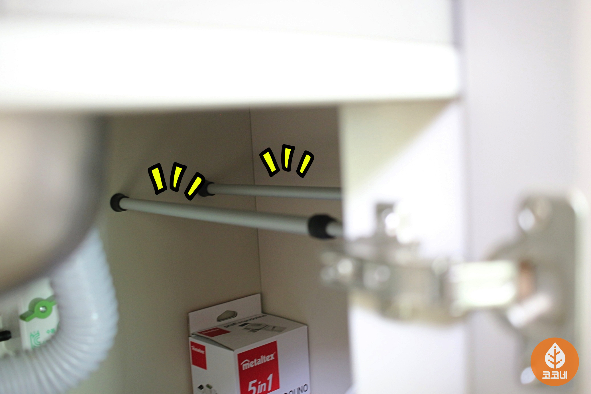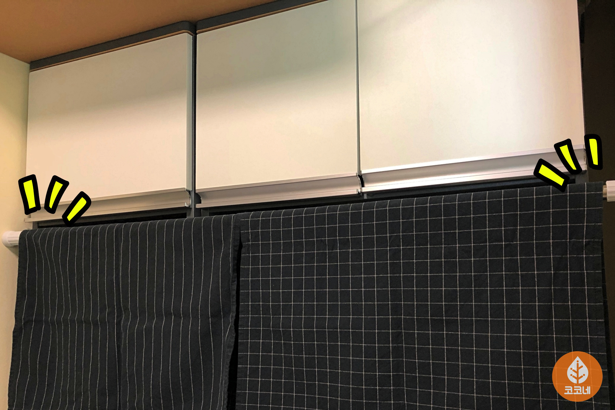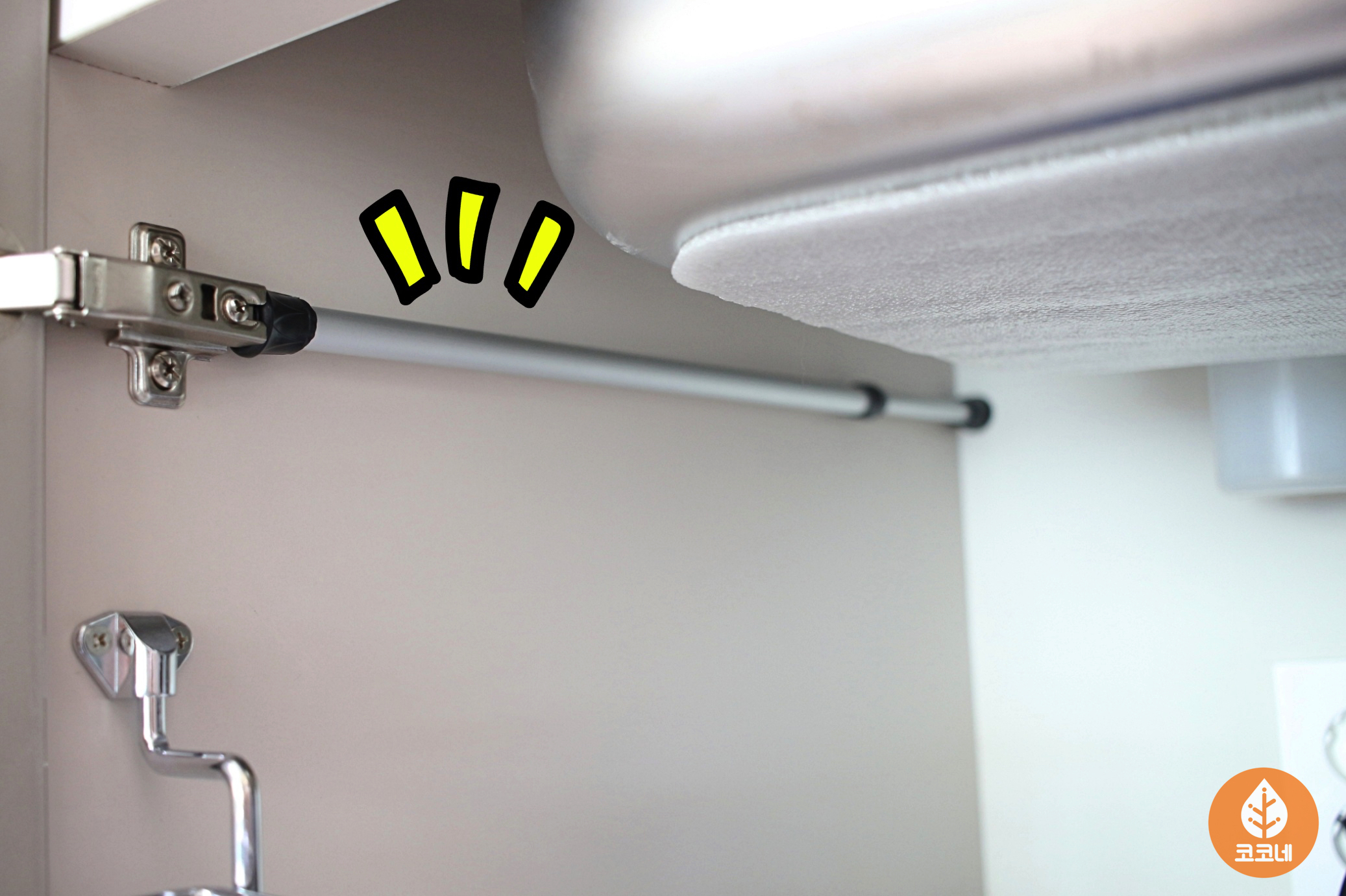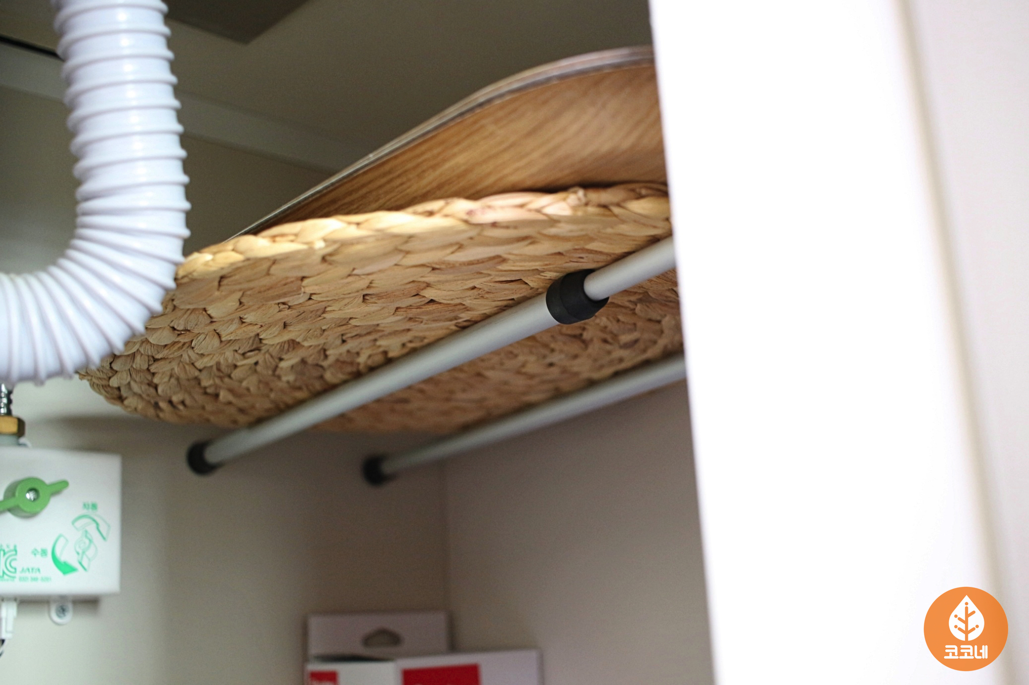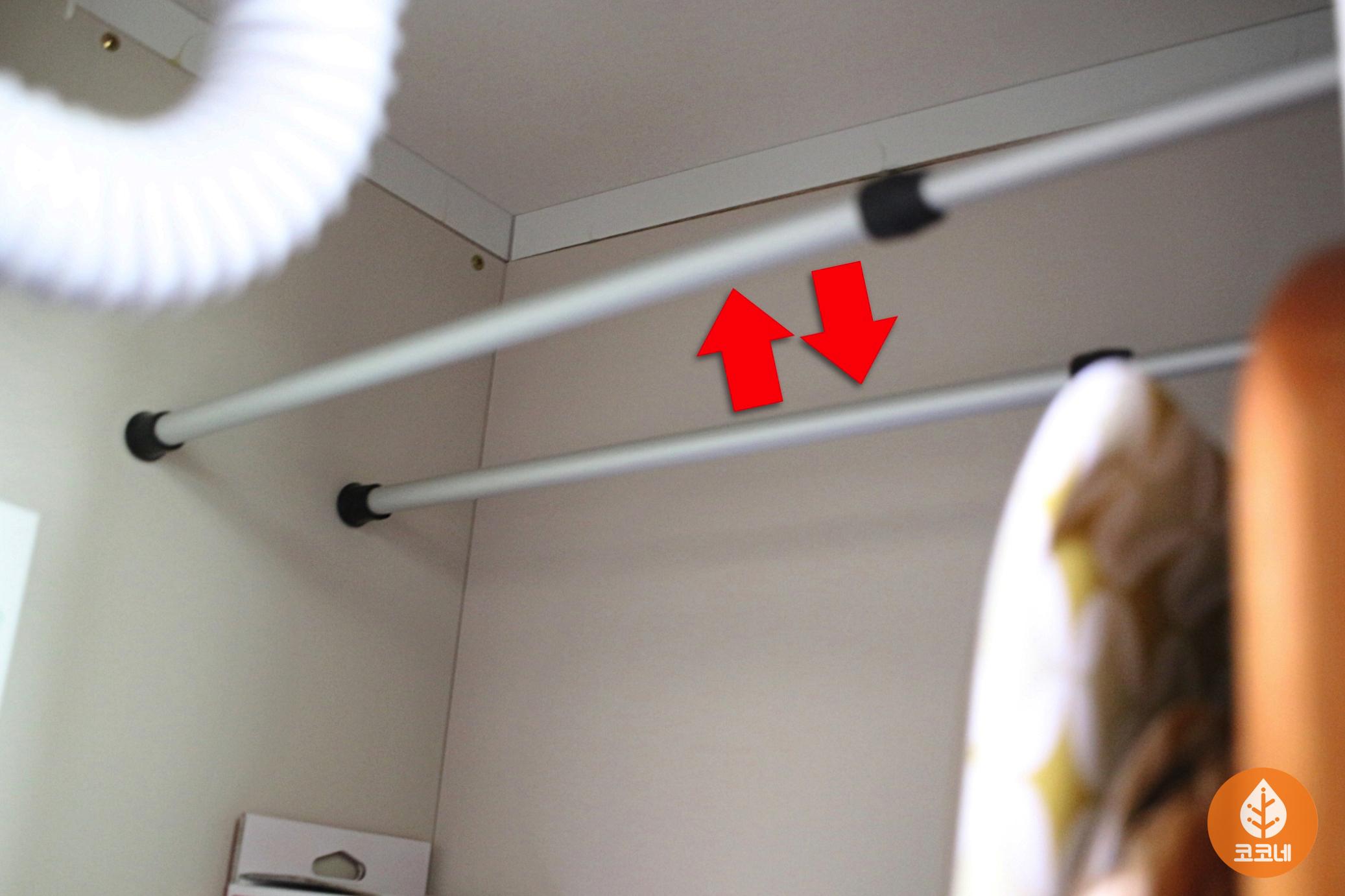 오픈된 수납장에 압축봉을 설치하고