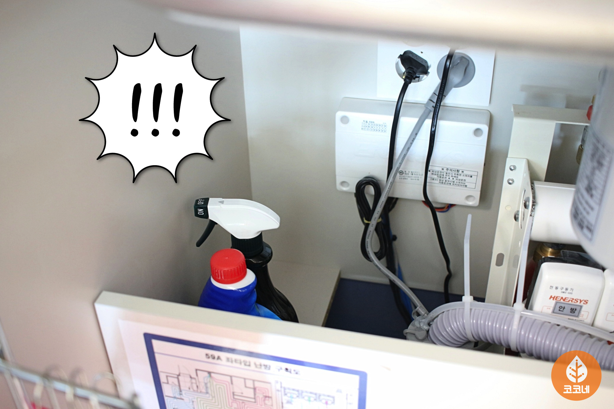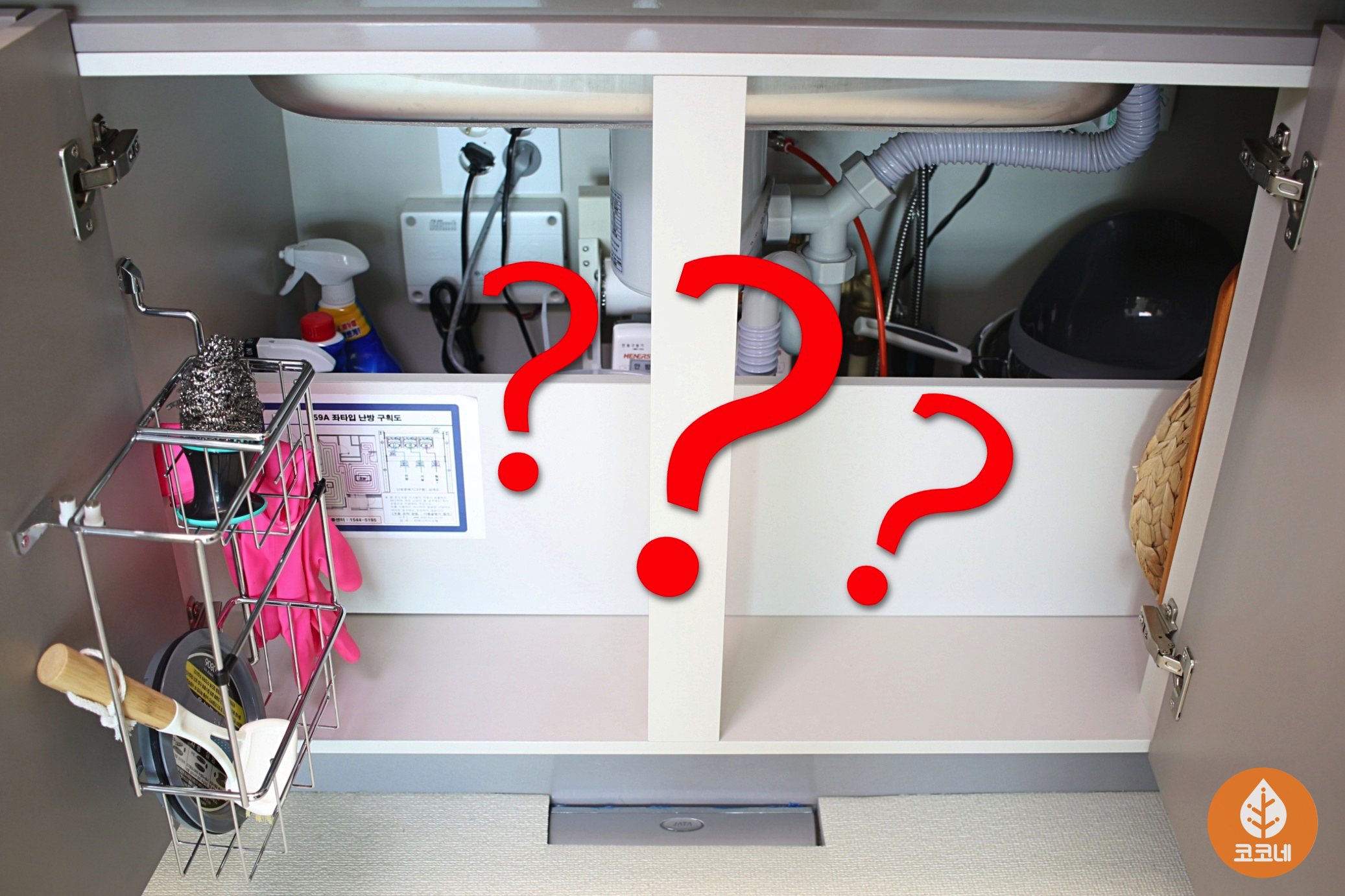 배수관이 있는 싱크대 아래쪽 공간도