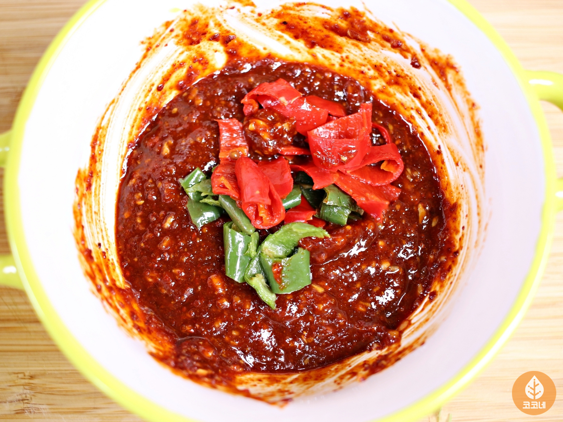 고추장2(듬뿍), 고춧가루2, 간장2, 올리고당2,