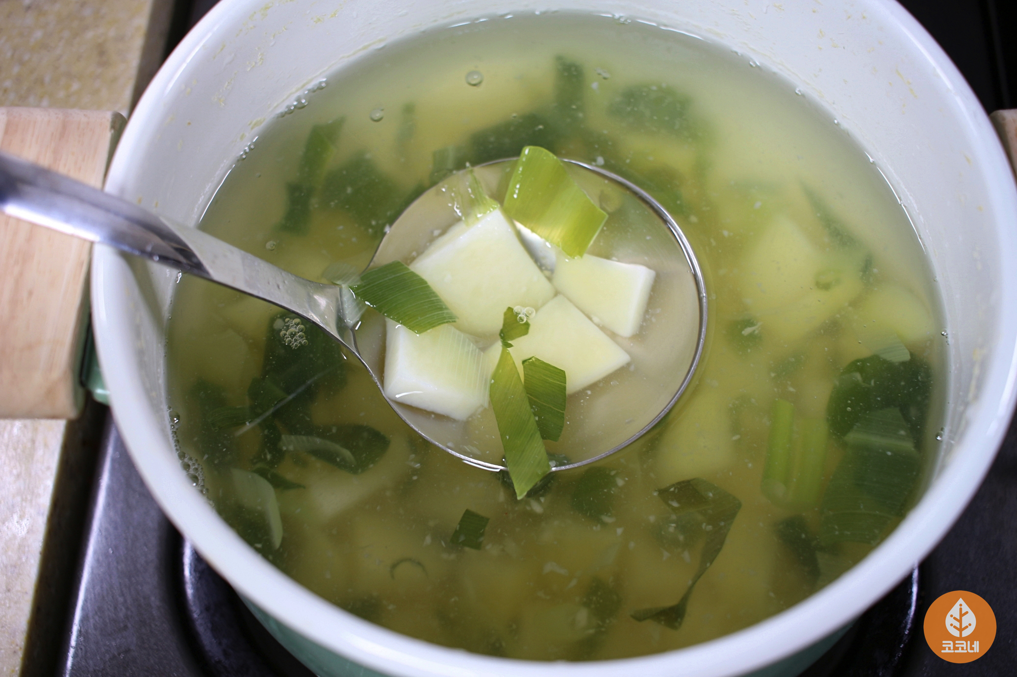 국자바닥을 국물에 살짝 담갔다가 들면