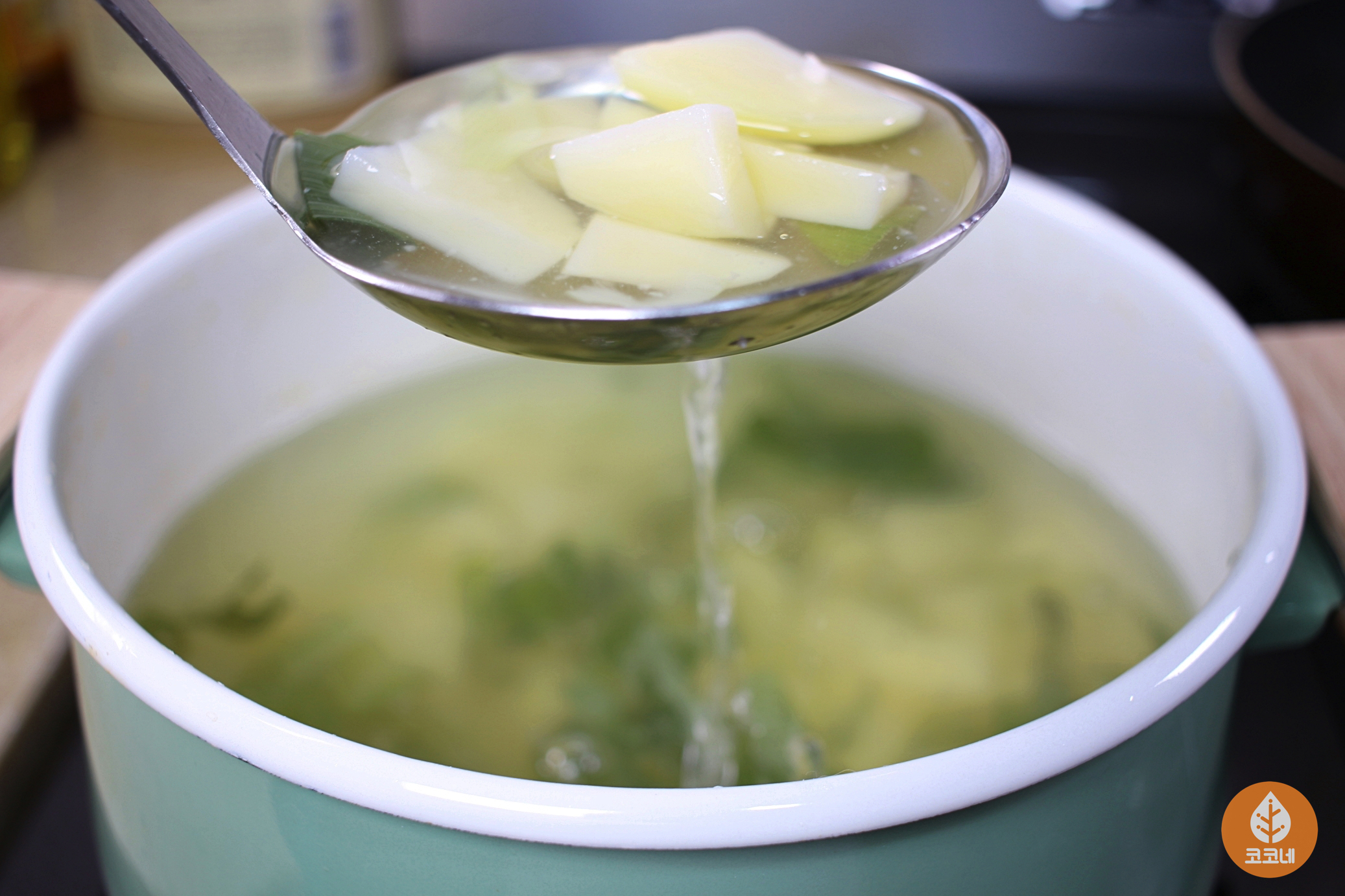국자를 다시 살짝만 담갔다가 빼면