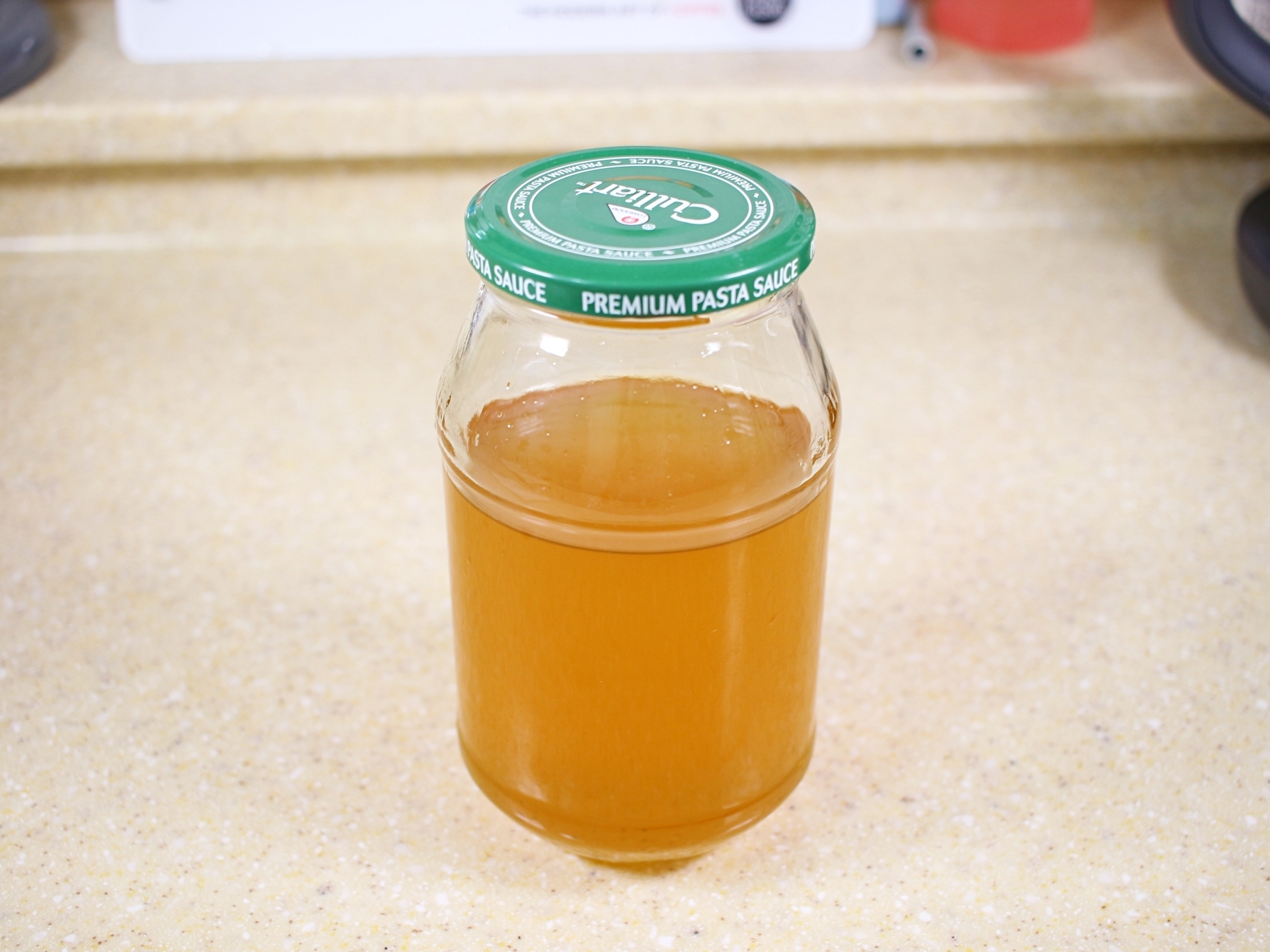 더 깔끔한 상태의 기름만 병에 담아주세요.