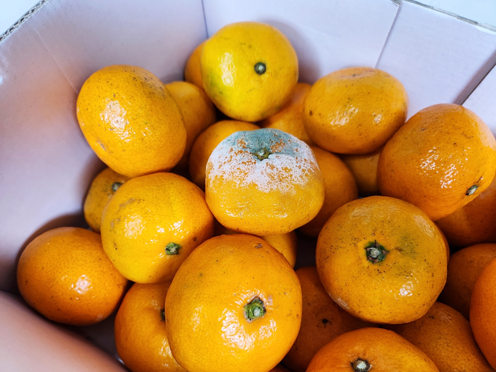 눈에 띄게 무른 귤이나 곰팡이가 핀 귤은 바로 제거하고,