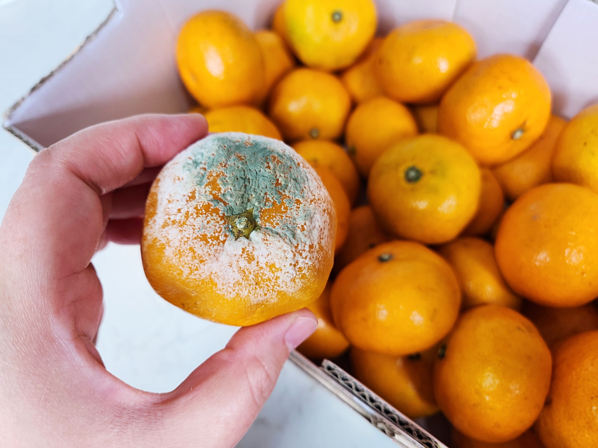 눈에 띄게 무른 귤이나 곰팡이가 핀 귤은 바로 제거하고,