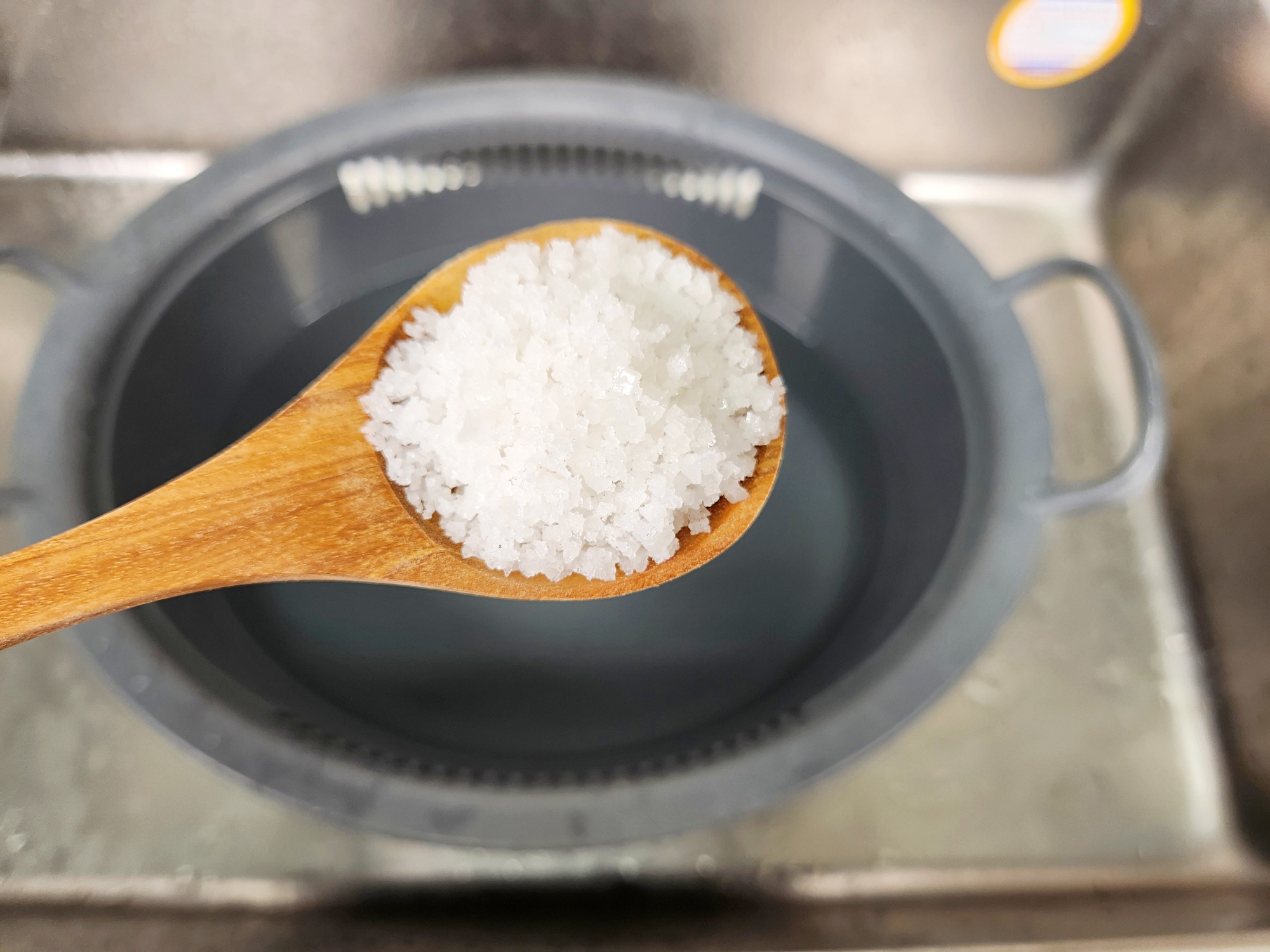 물3L에 굵은 소금 1스푼을 넣고