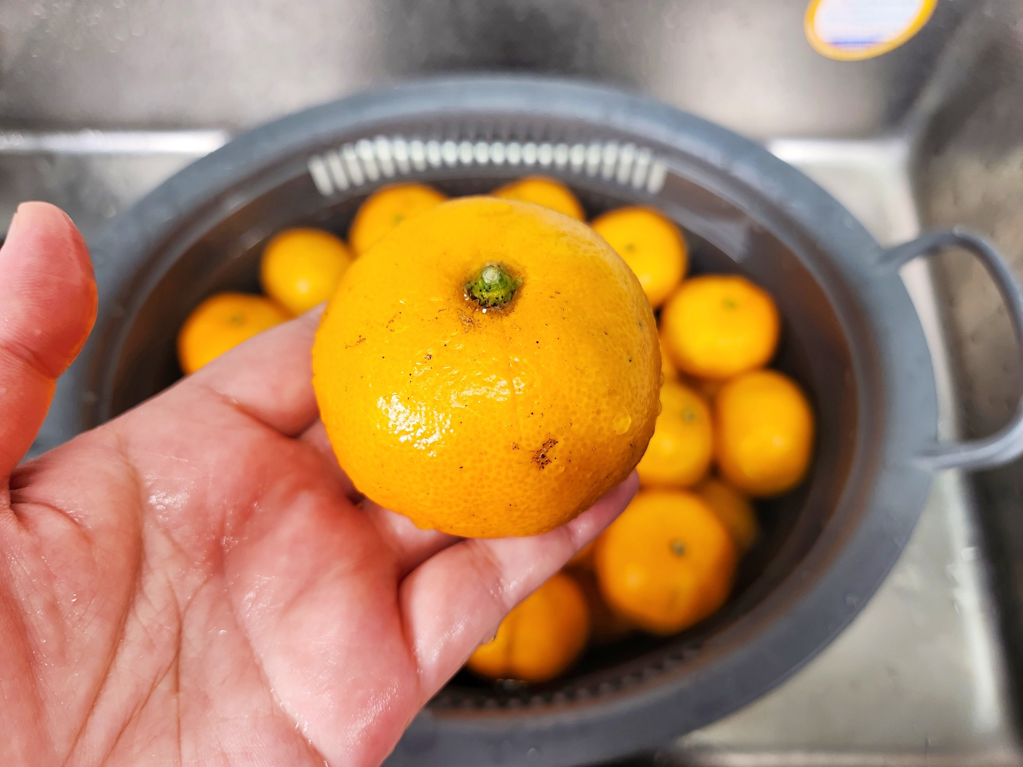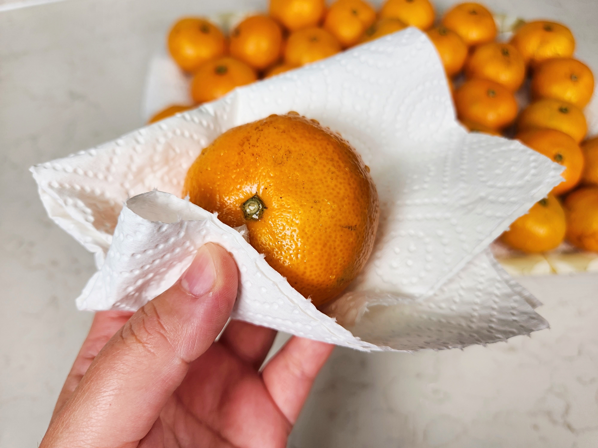 귤 껍질은 얇고 연해서 너무 세게 문지르면 상처가 나요.
