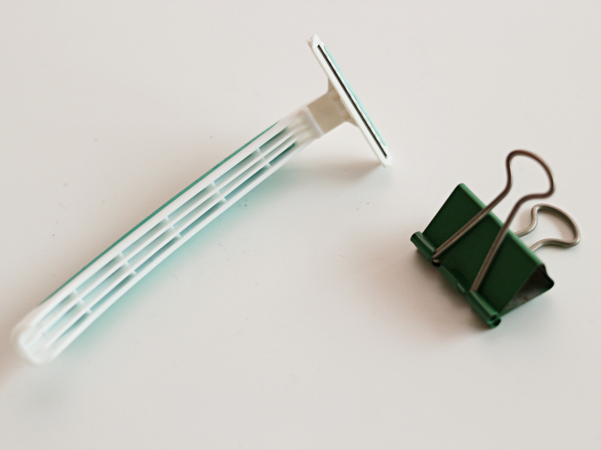 집게로 면도날 부분을 집어놓으면 손 다칠 위험이 없어요.