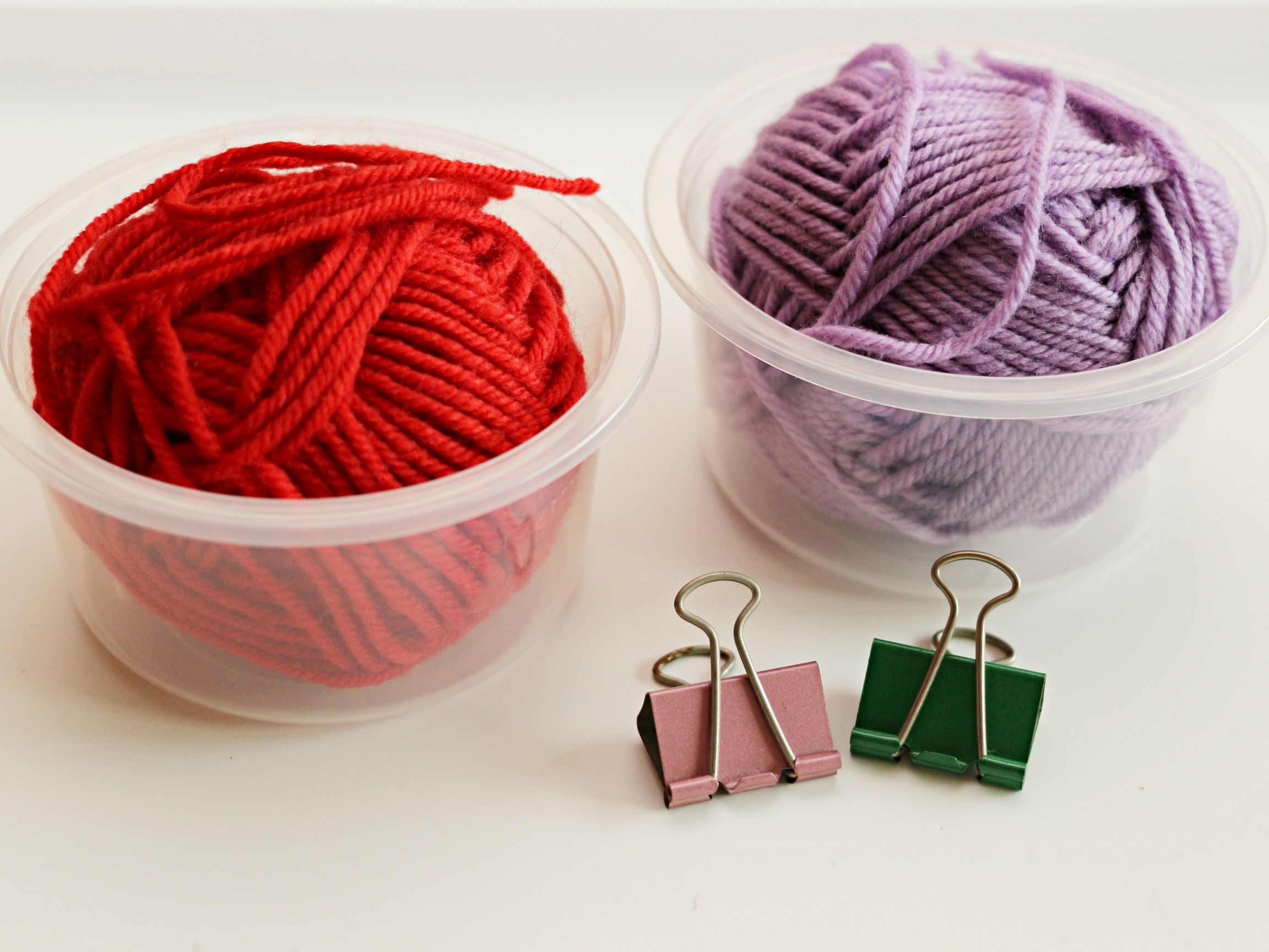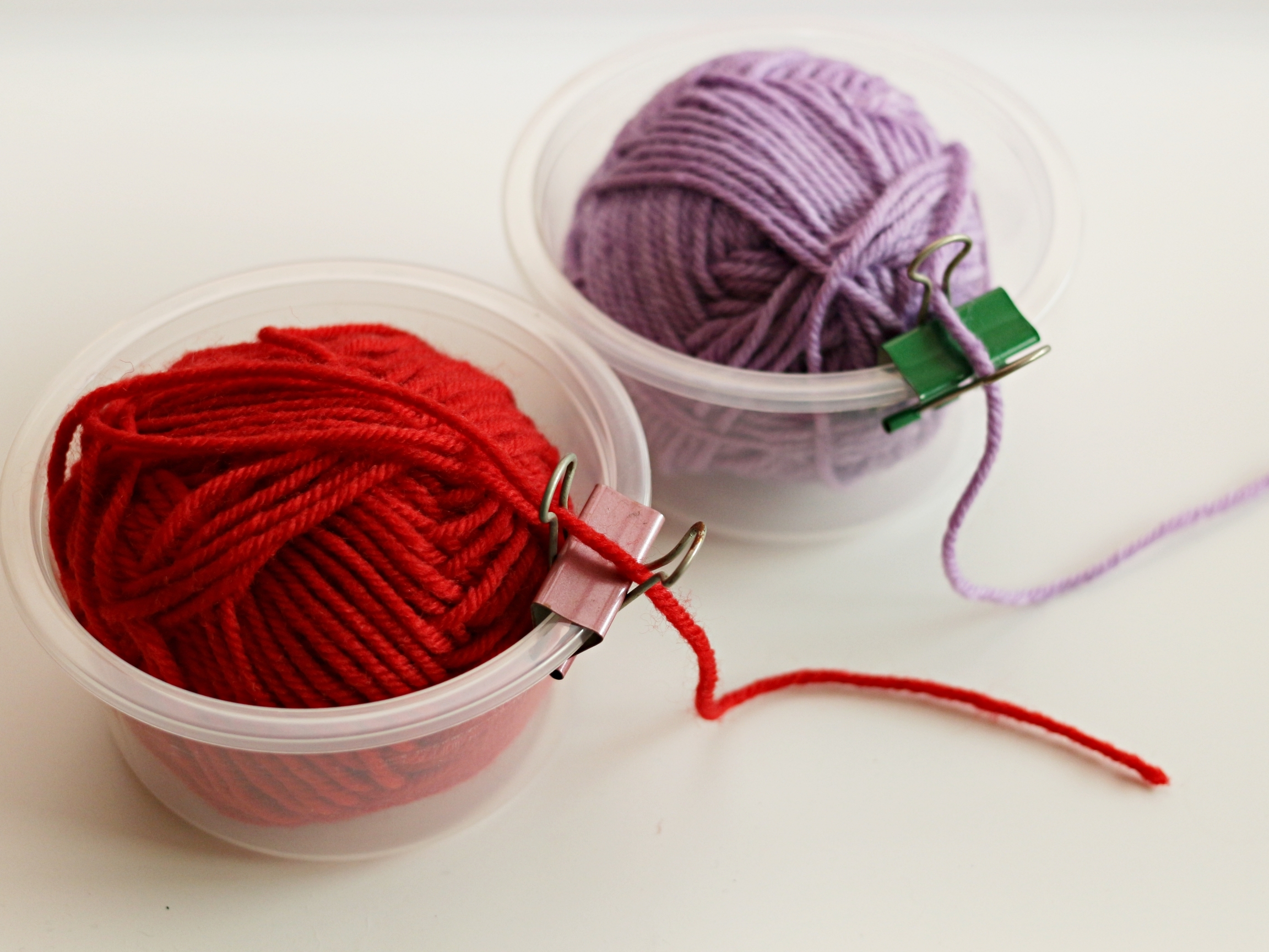 마지막으로 뜨개질 하는 실이 담긴 통에 집게를 집어두고