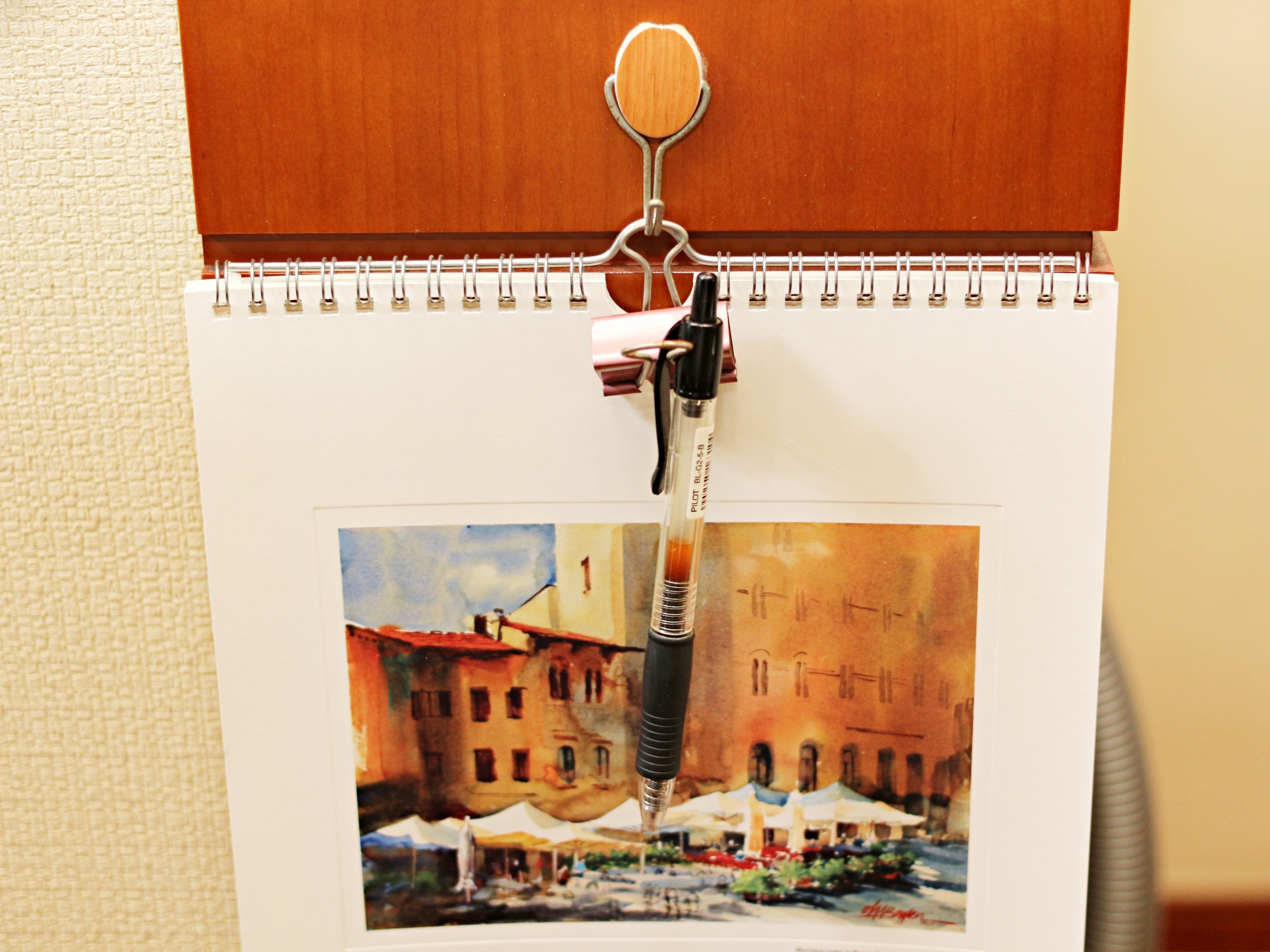 아니면 달력에 집게를 집어서 펜을 걸어두어도 되고요~