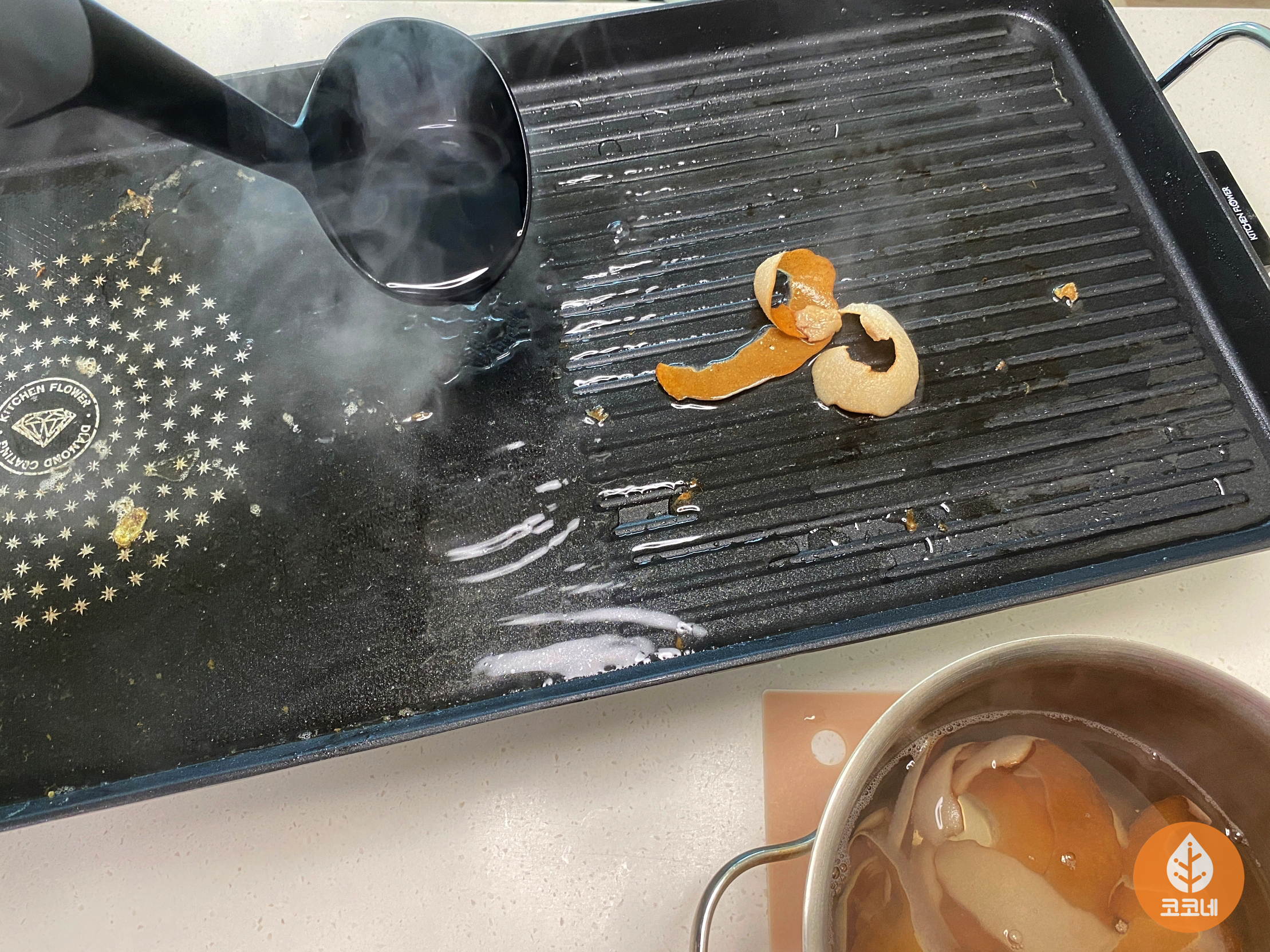 기름범벅된 전기프라이팬 세제로 닦지마세요!