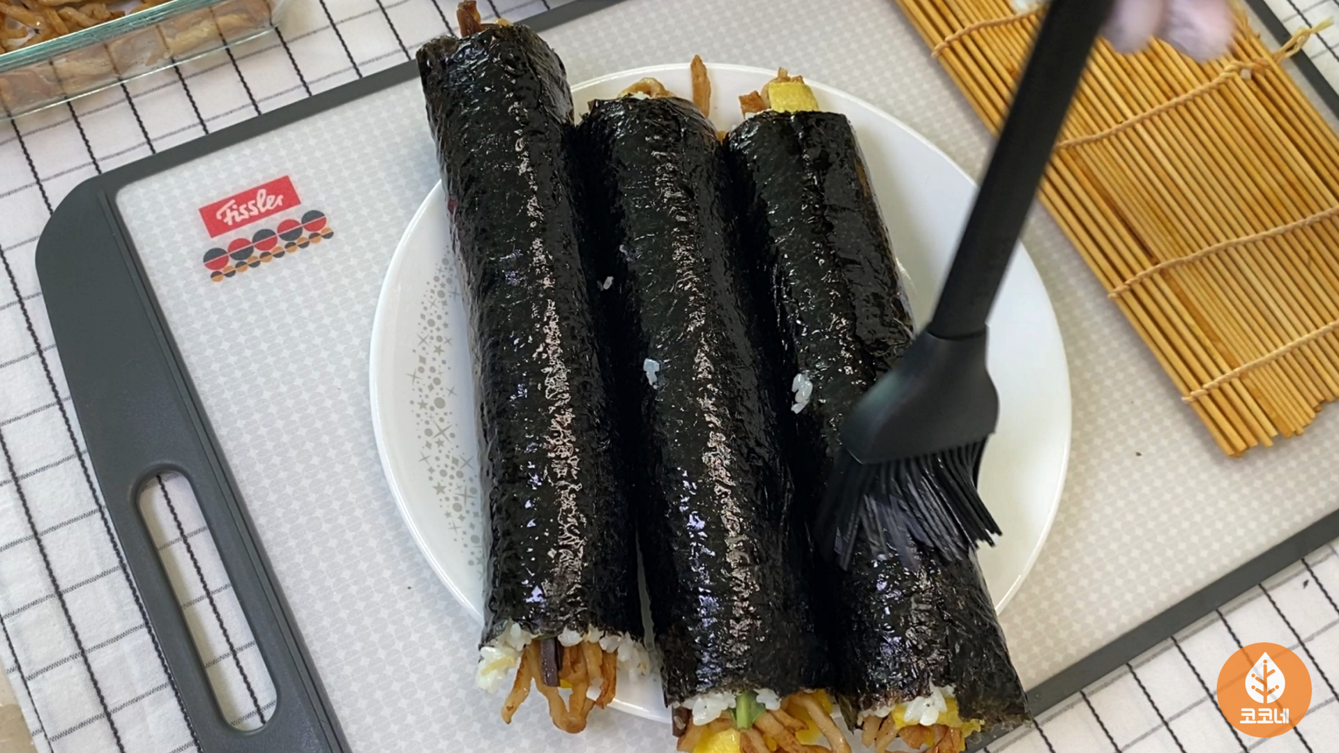 다른 김밥을 마는 동안 김이 잘 붙고요.
