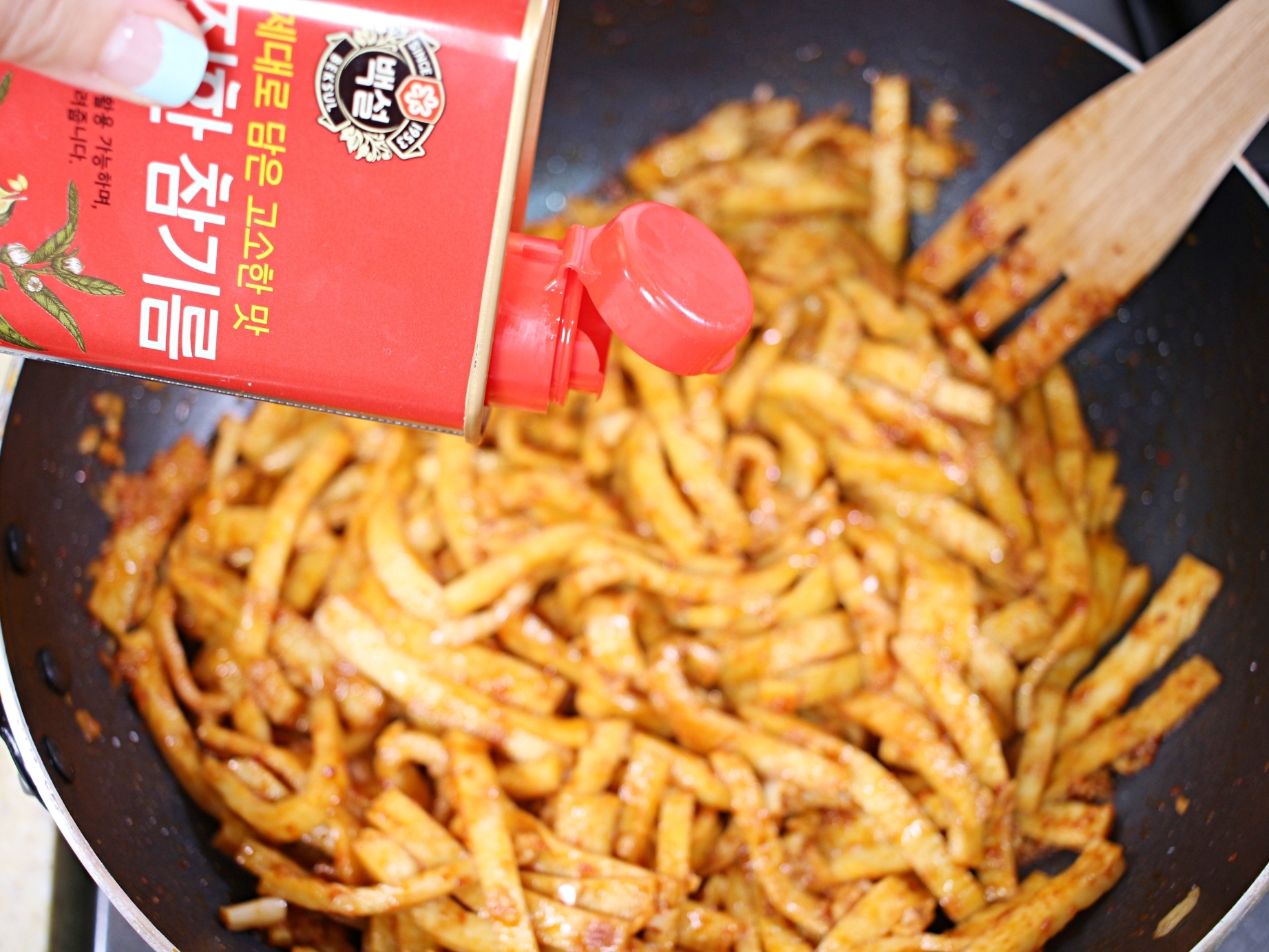 그 사이에 어묵볶음을 듬뿍 넣어요.
