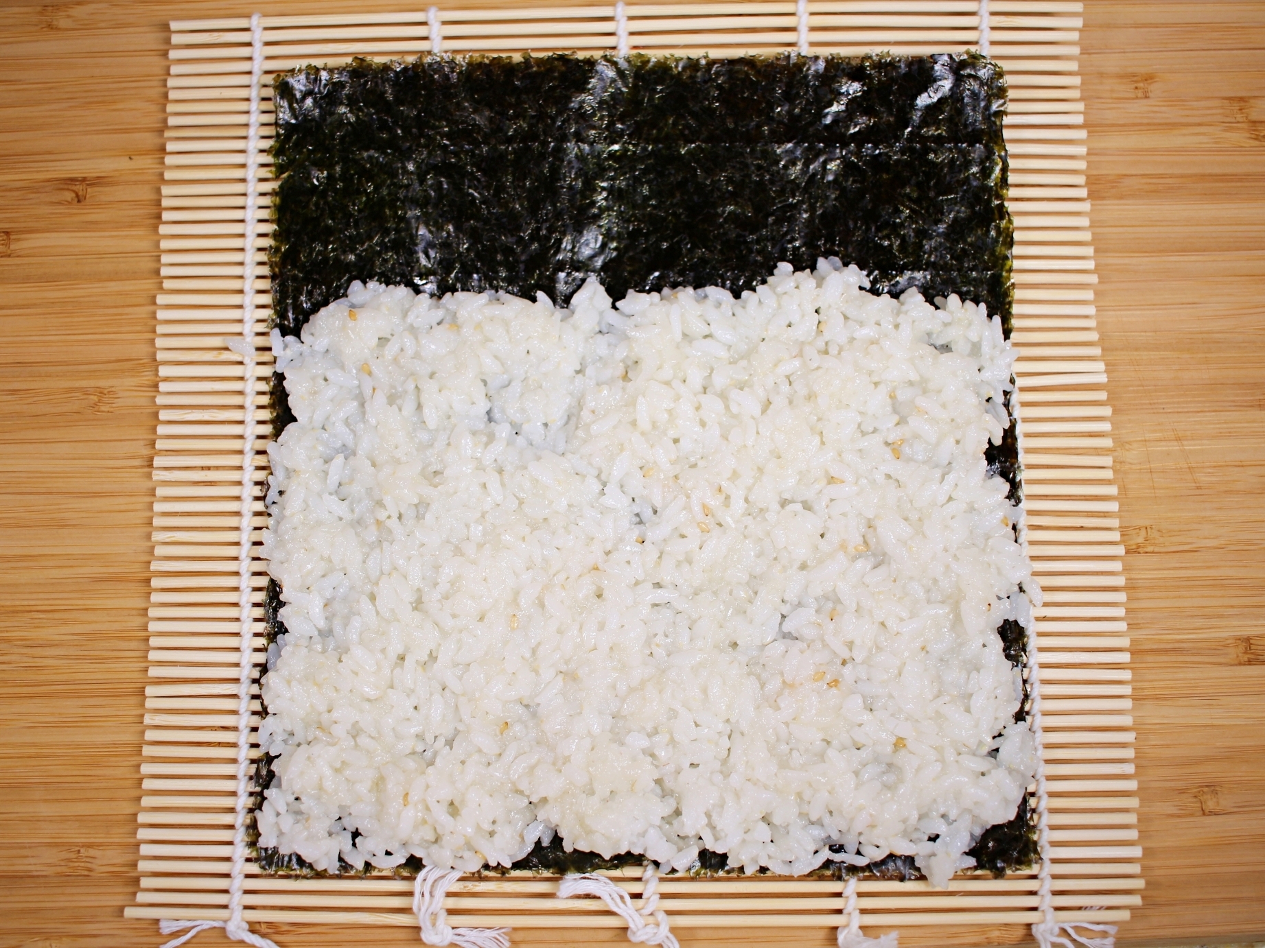김 위에 밥을 2/3 정도만 펼쳐주세요.