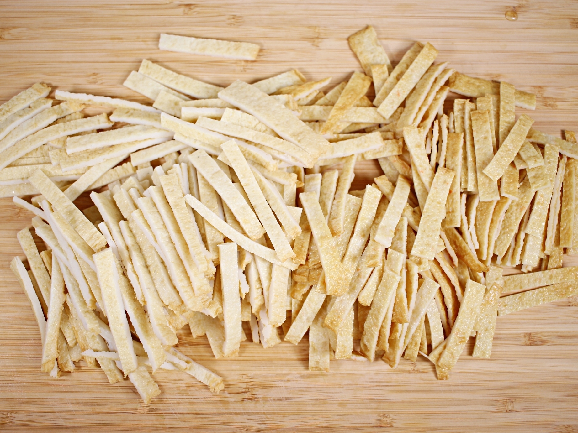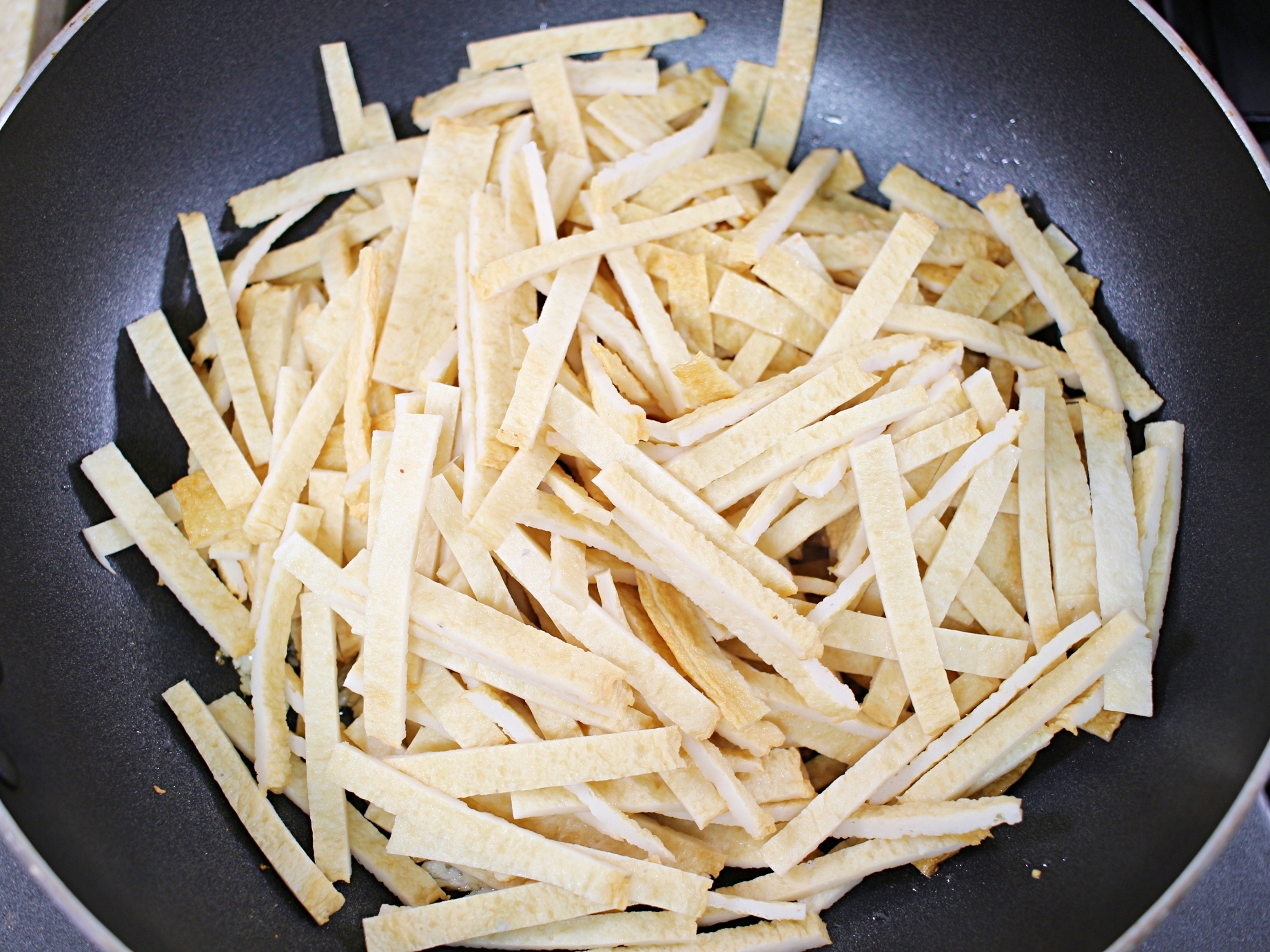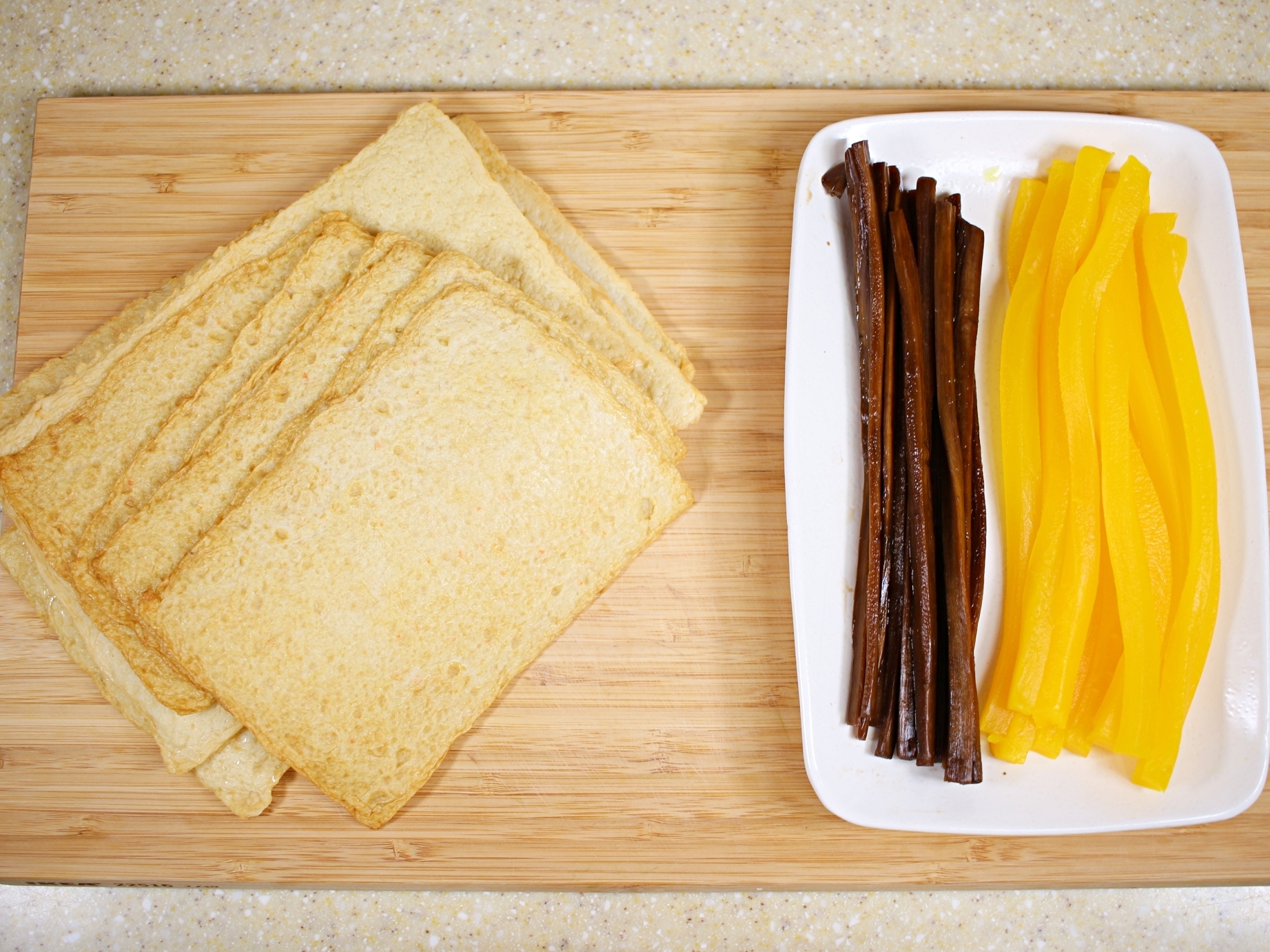 사각어묵 8장을 가늘게 채 썰어주세요.