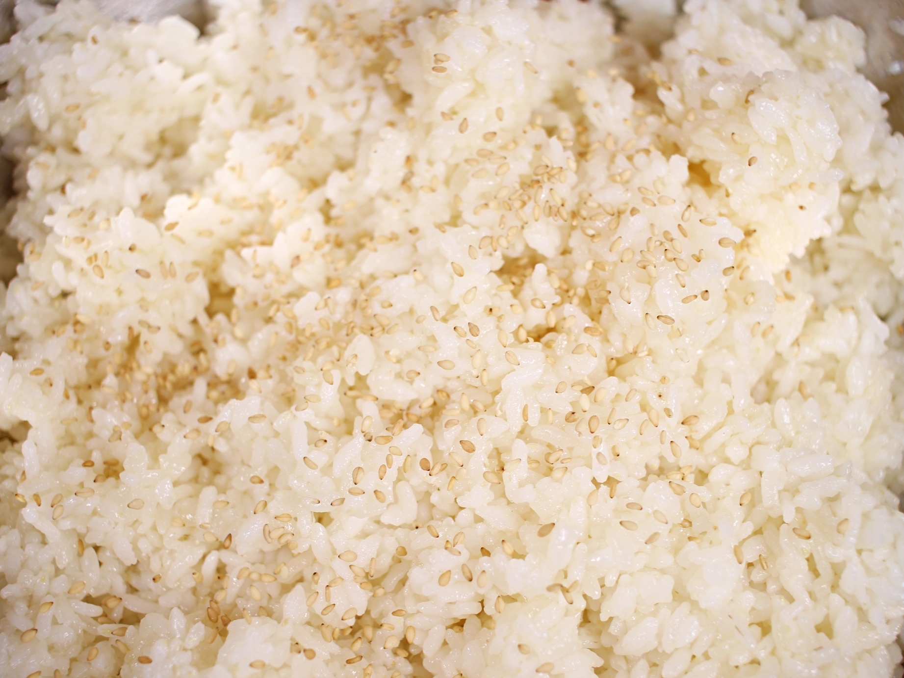 밥은 고운 소금, 참기름, 통깨를 섞어 간을 맞췄어요.