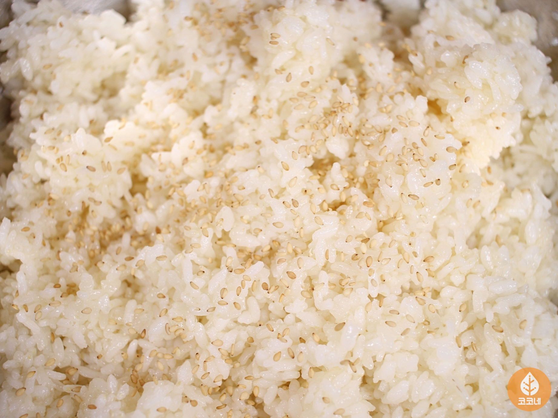 밥은 고운소금, 참기름, 통깨 뿌려서 간 했어요.