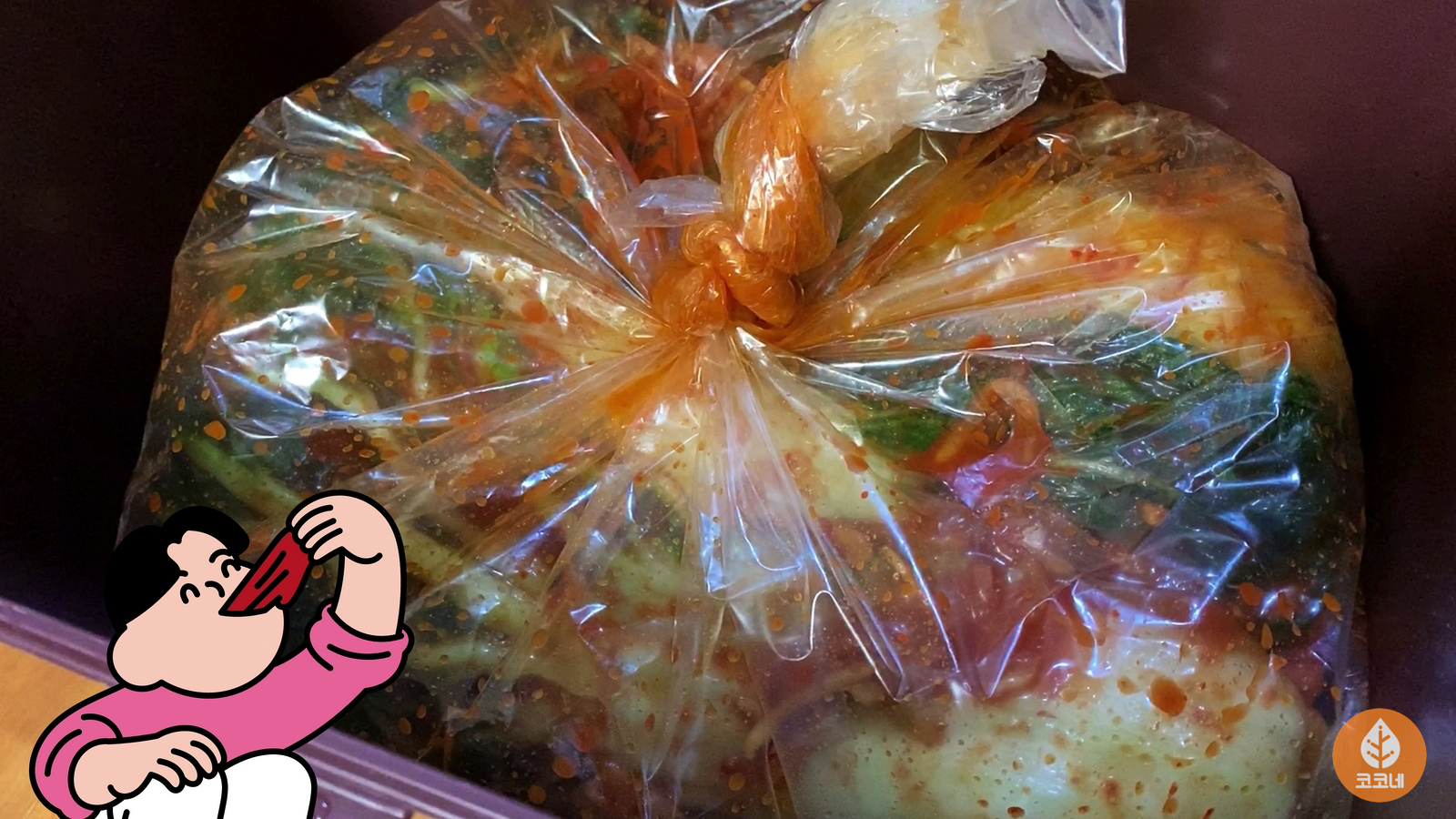 김치가 눌려서 국물이 흐르기도 하고,