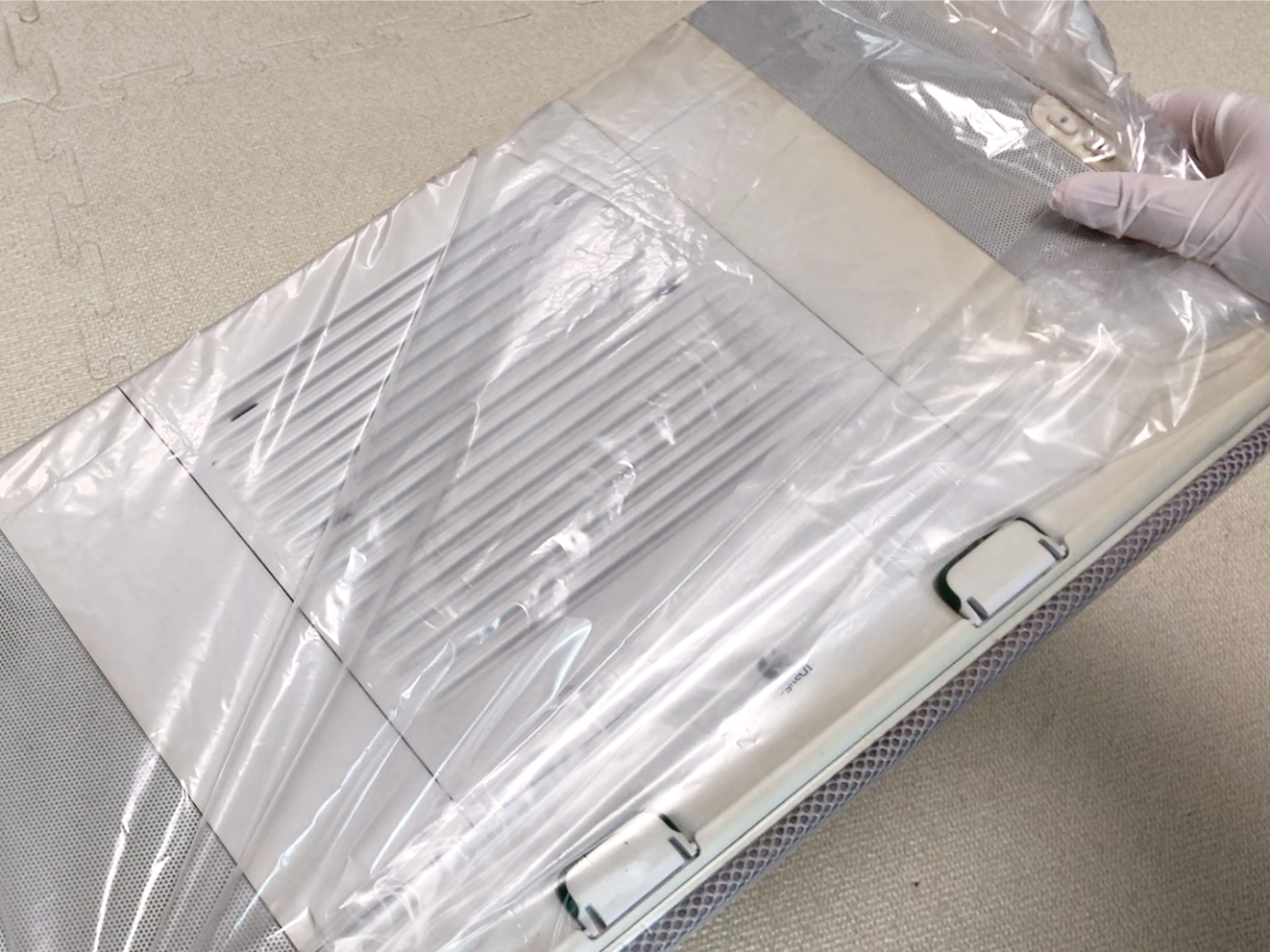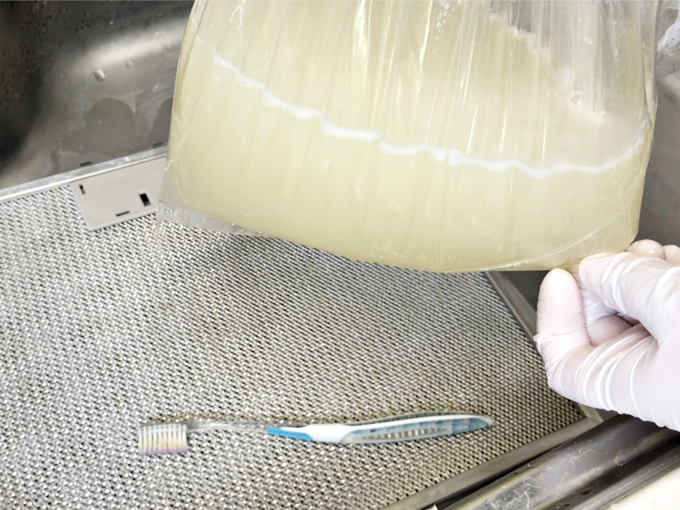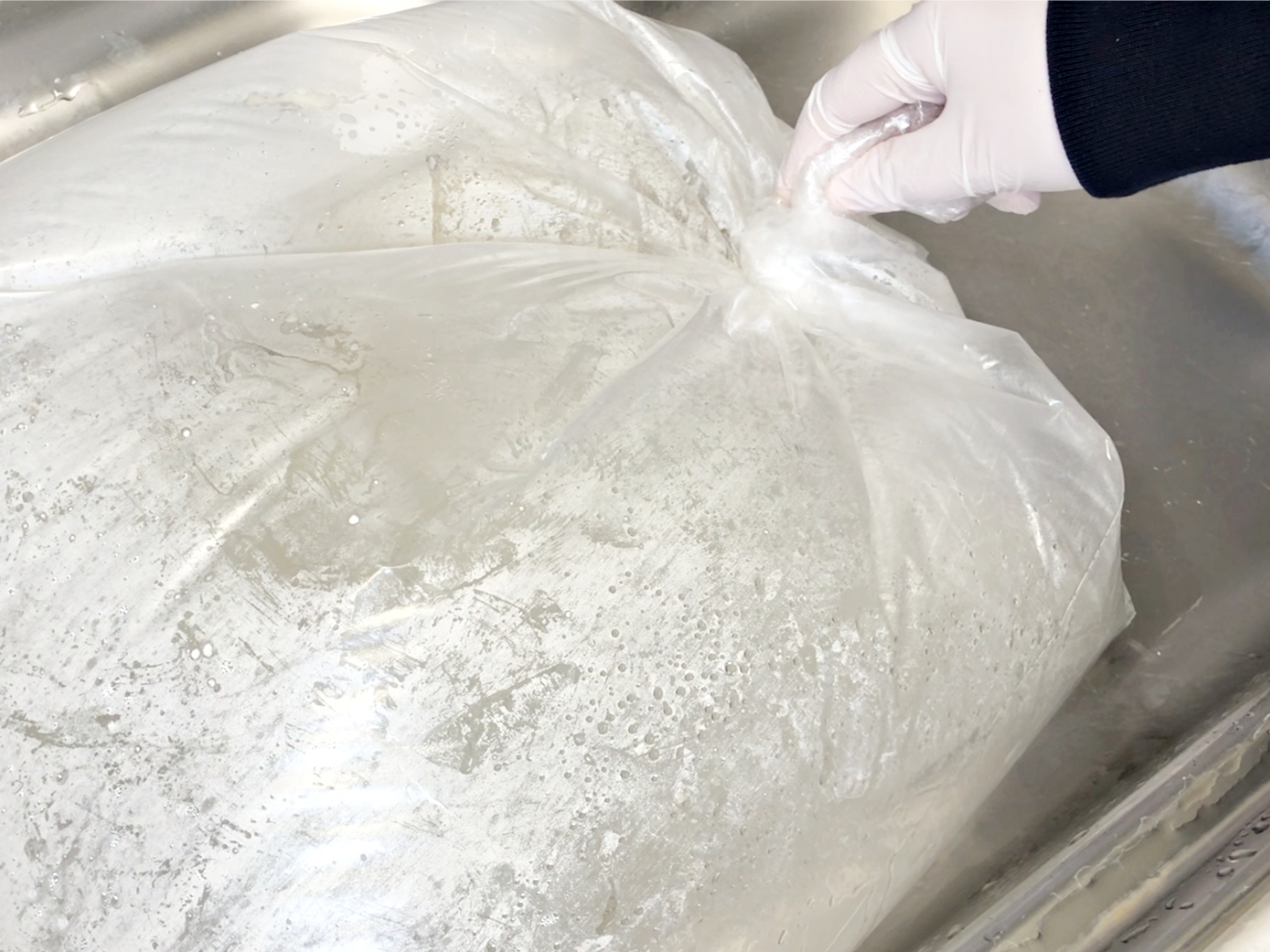 뜨거운 물로 헹군 필터를 김장비닐 안에 넣고