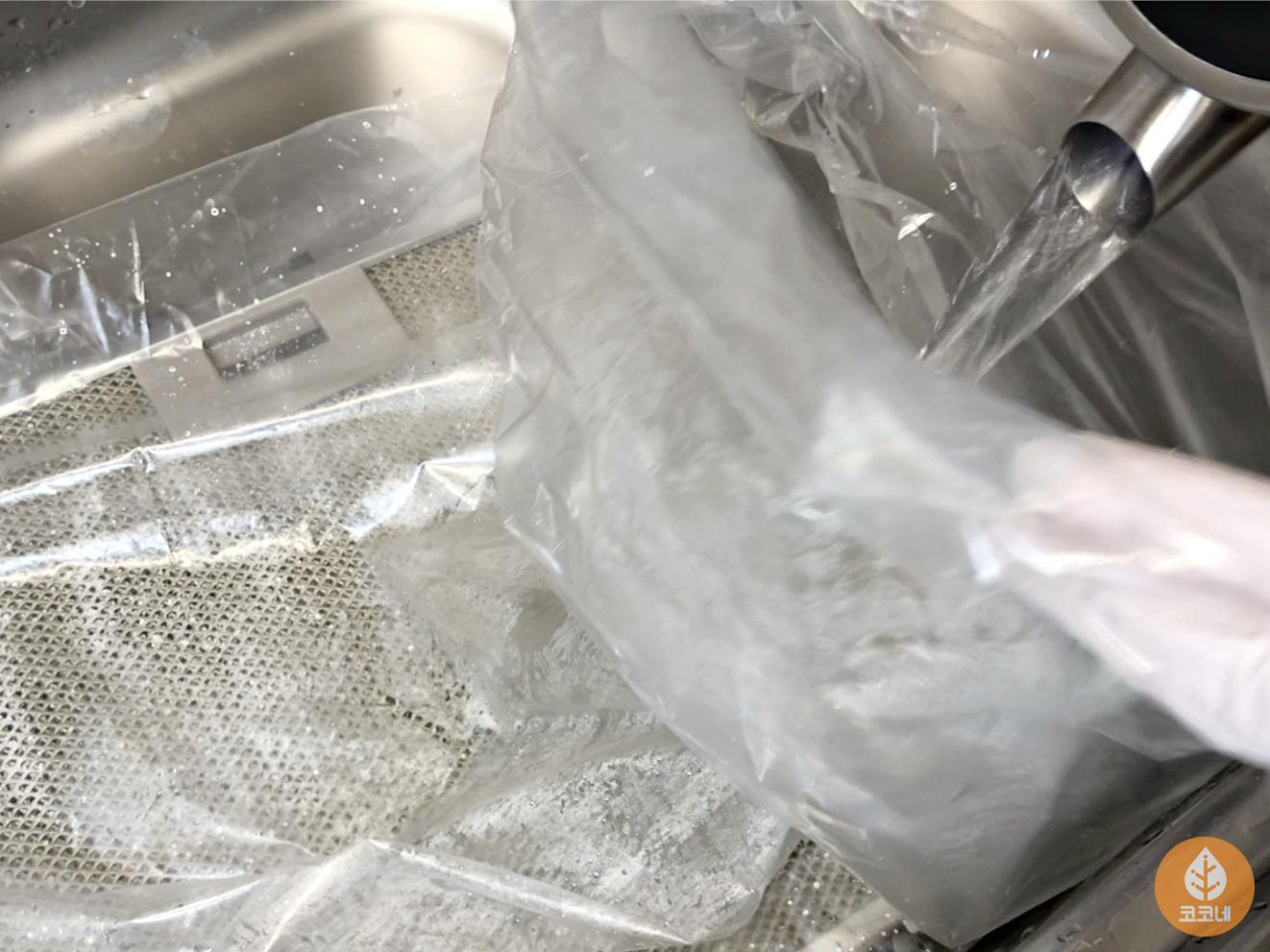 일반 비닐은 뜨거운 물을 견디지 못하고 구멍이 나지만