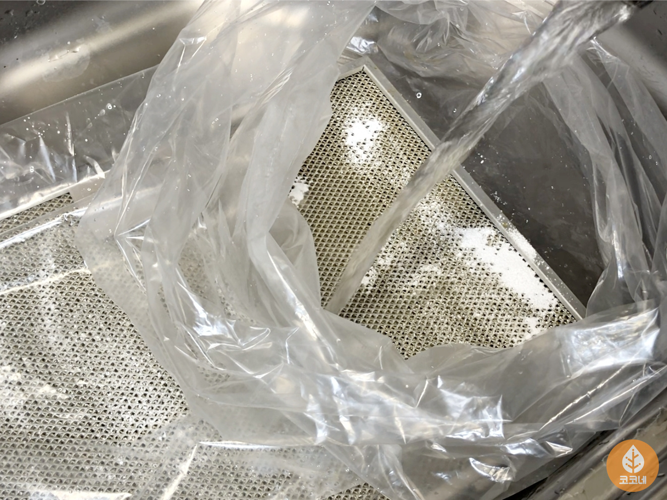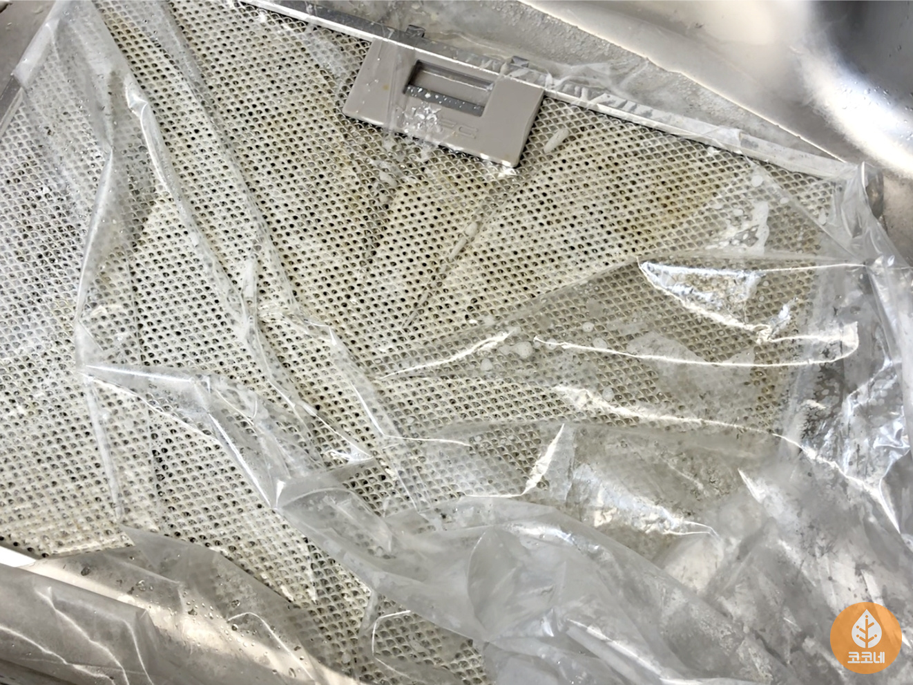 주방후드 필터 세척할 때 싱크볼에 물을 채워서 하면