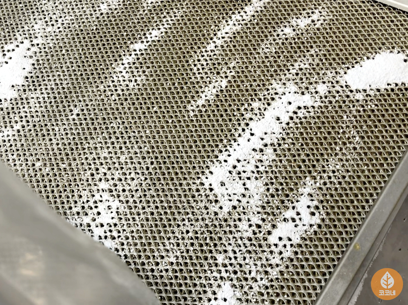 필터 위에 과탄산소다를 골고루 뿌린 다음