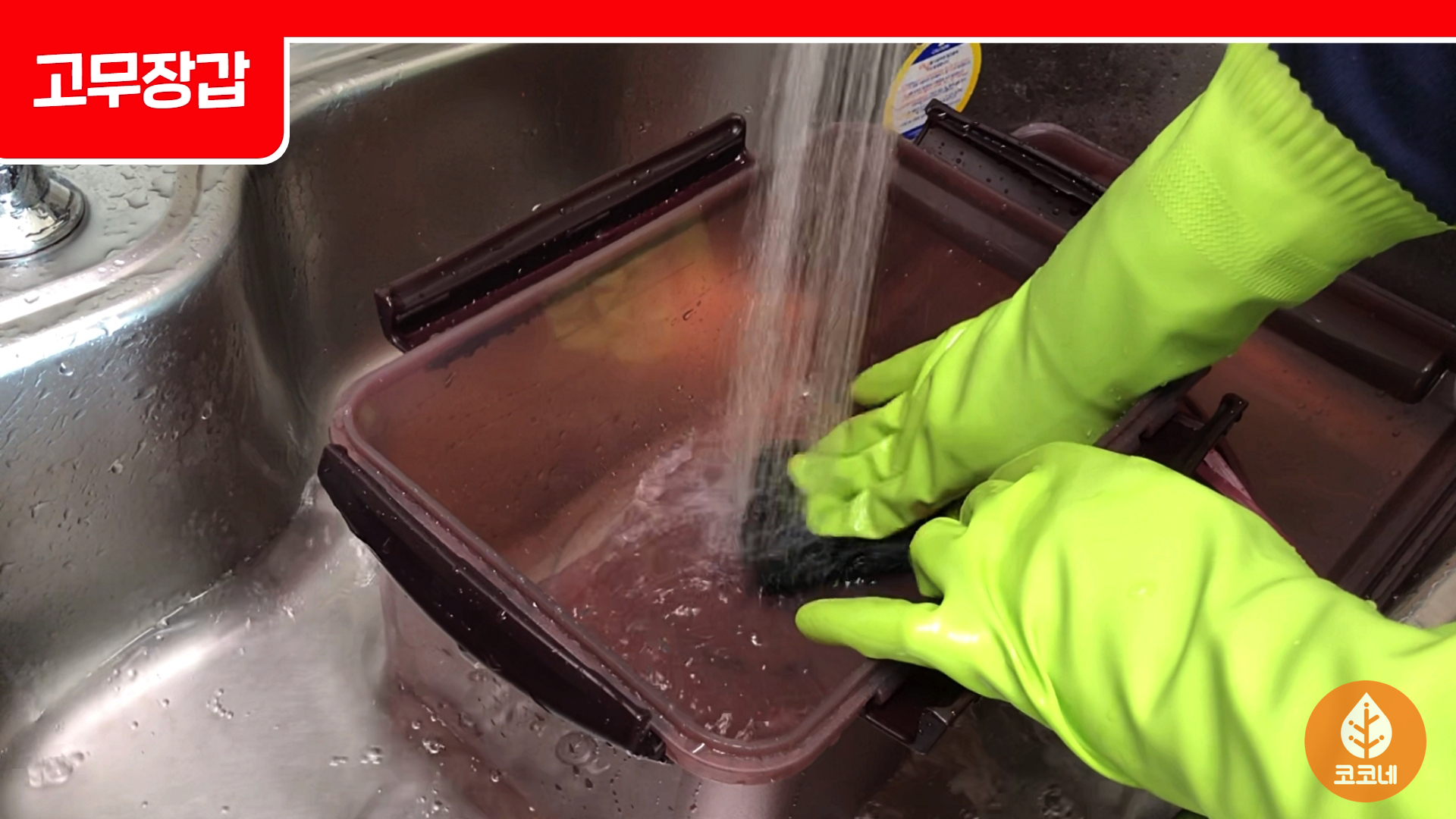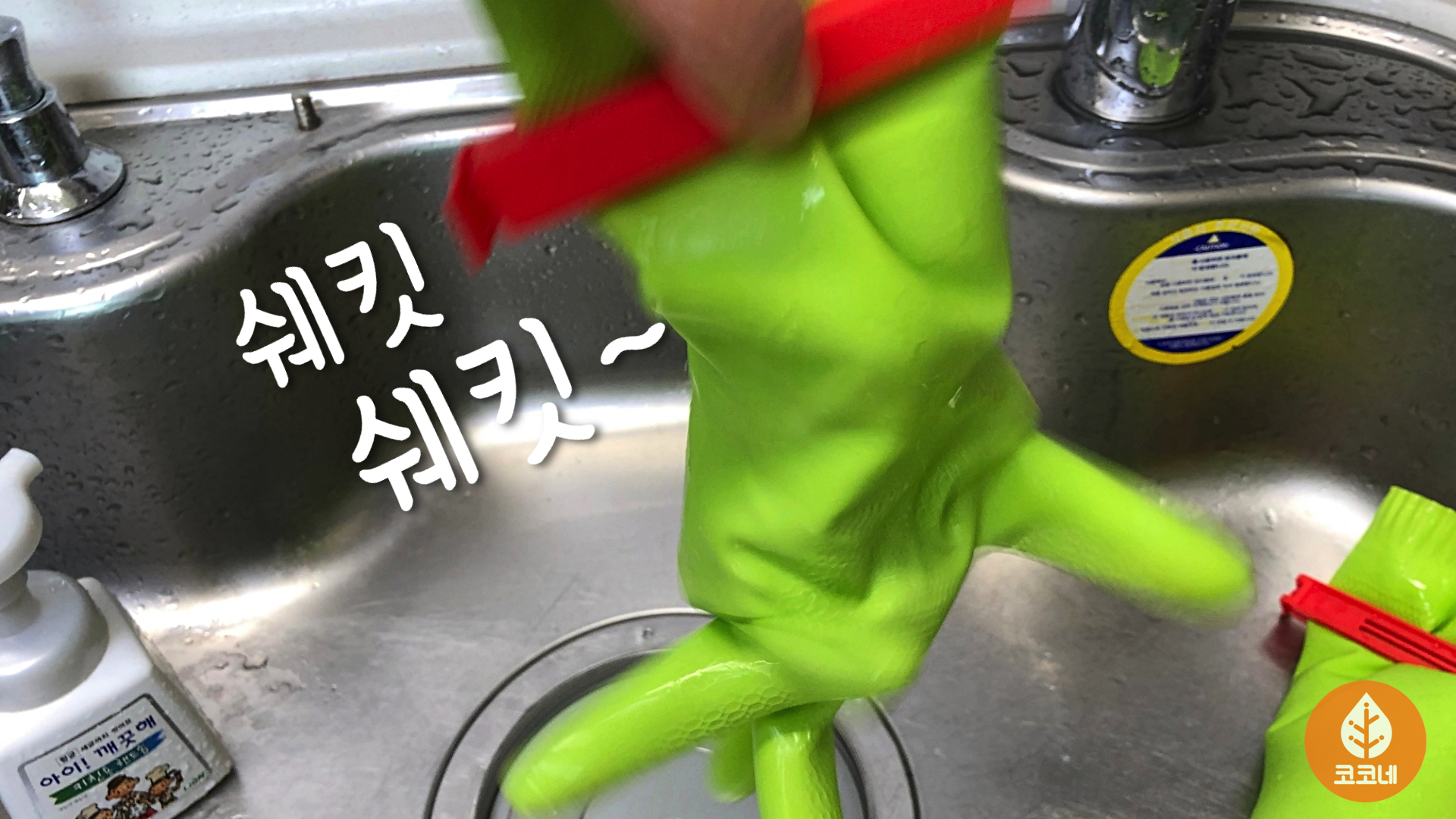 고무장갑을 앞뒤로 각각 5분씩 담가주면