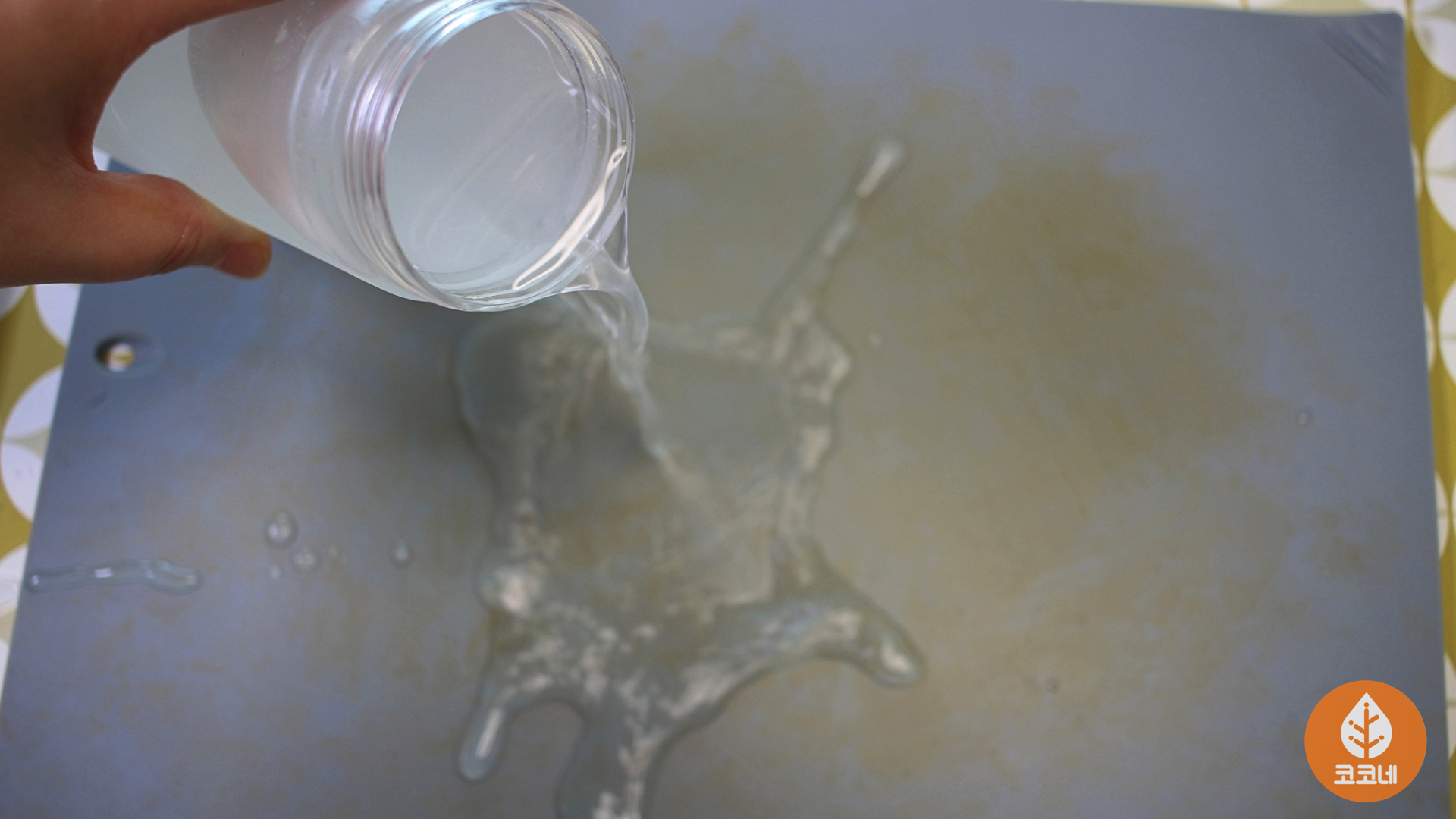 1시간 뒤 부드러운 수세미로 도마를 닦아주고