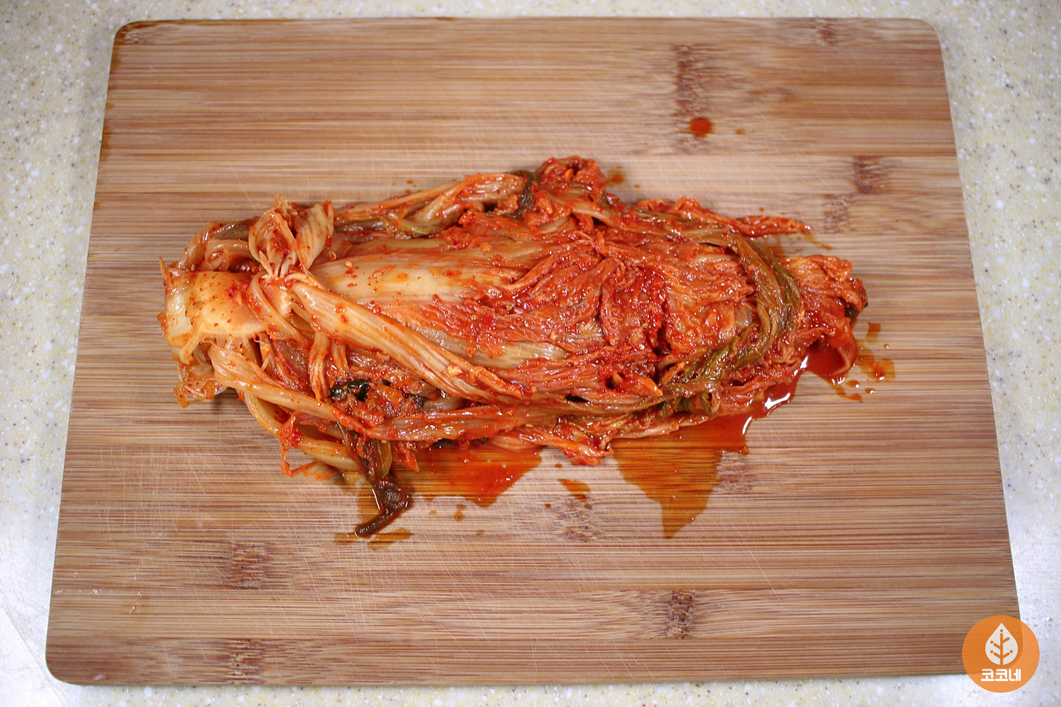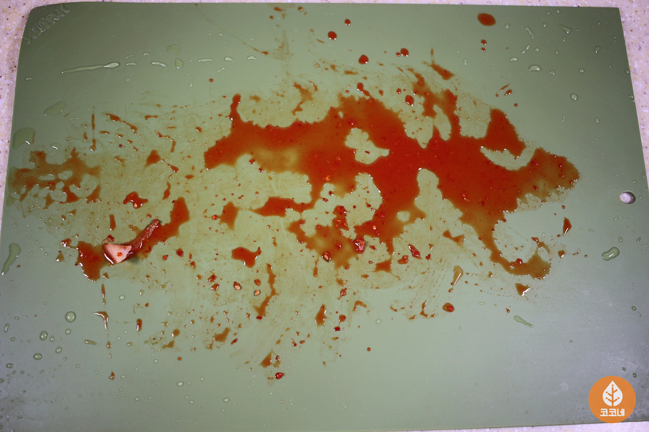 도마에 빨간 김치국물 얼룩이 져요.