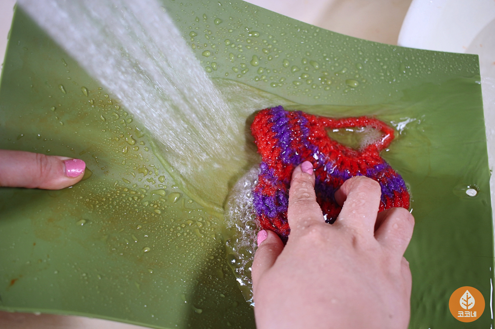 물로 헹굴 때 수세미로 닦아서