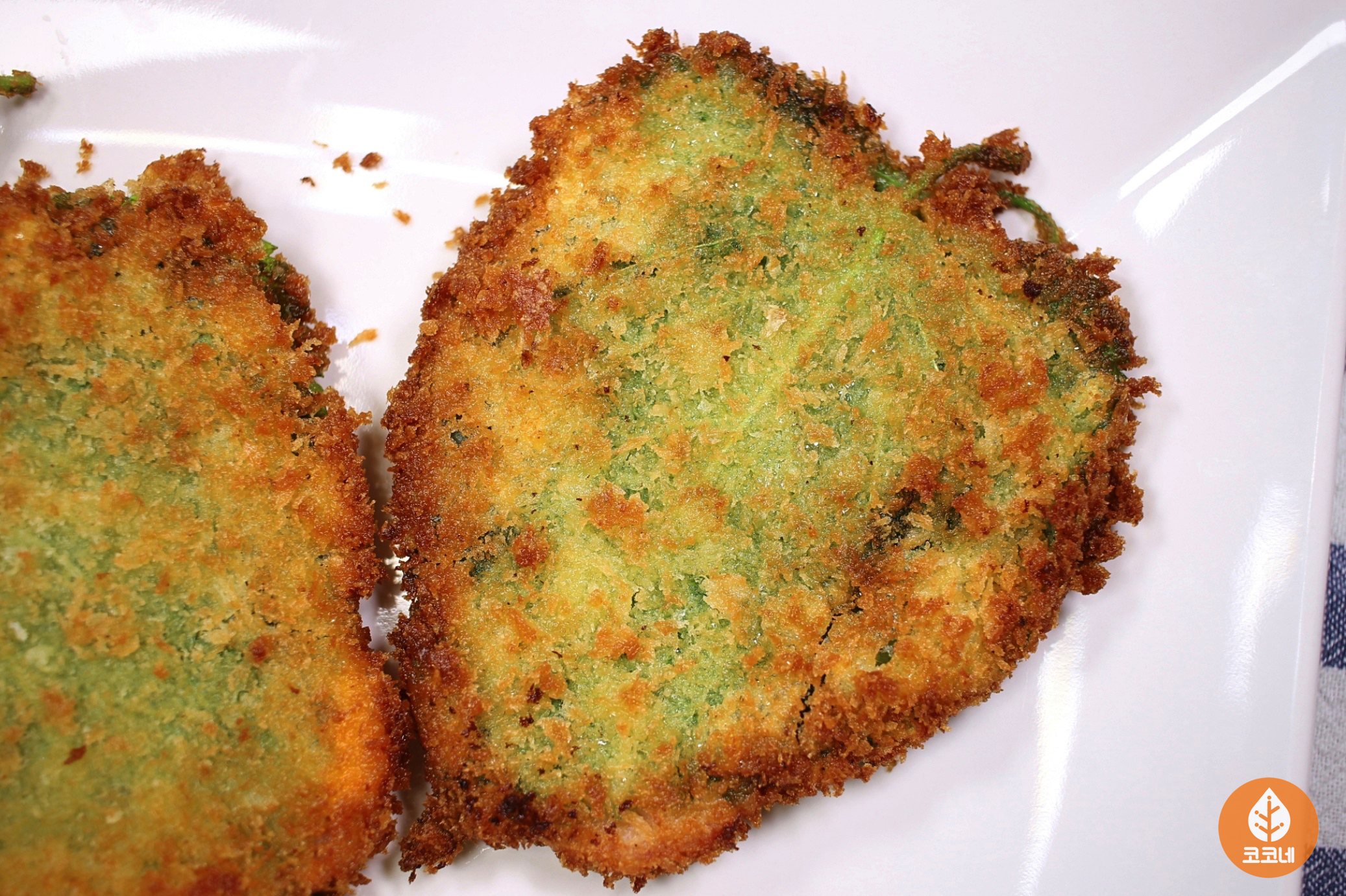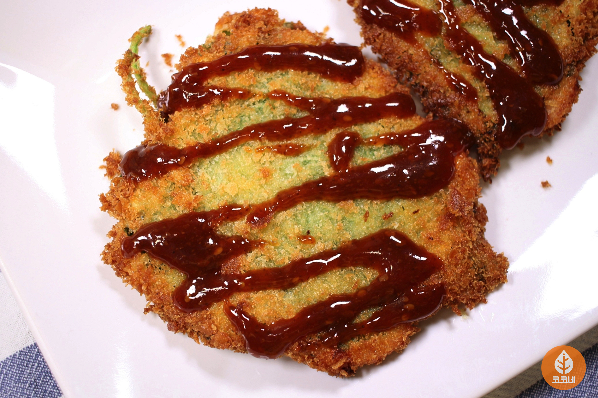튀김옷은 밀가루, 계란물, 빵가루 순으로