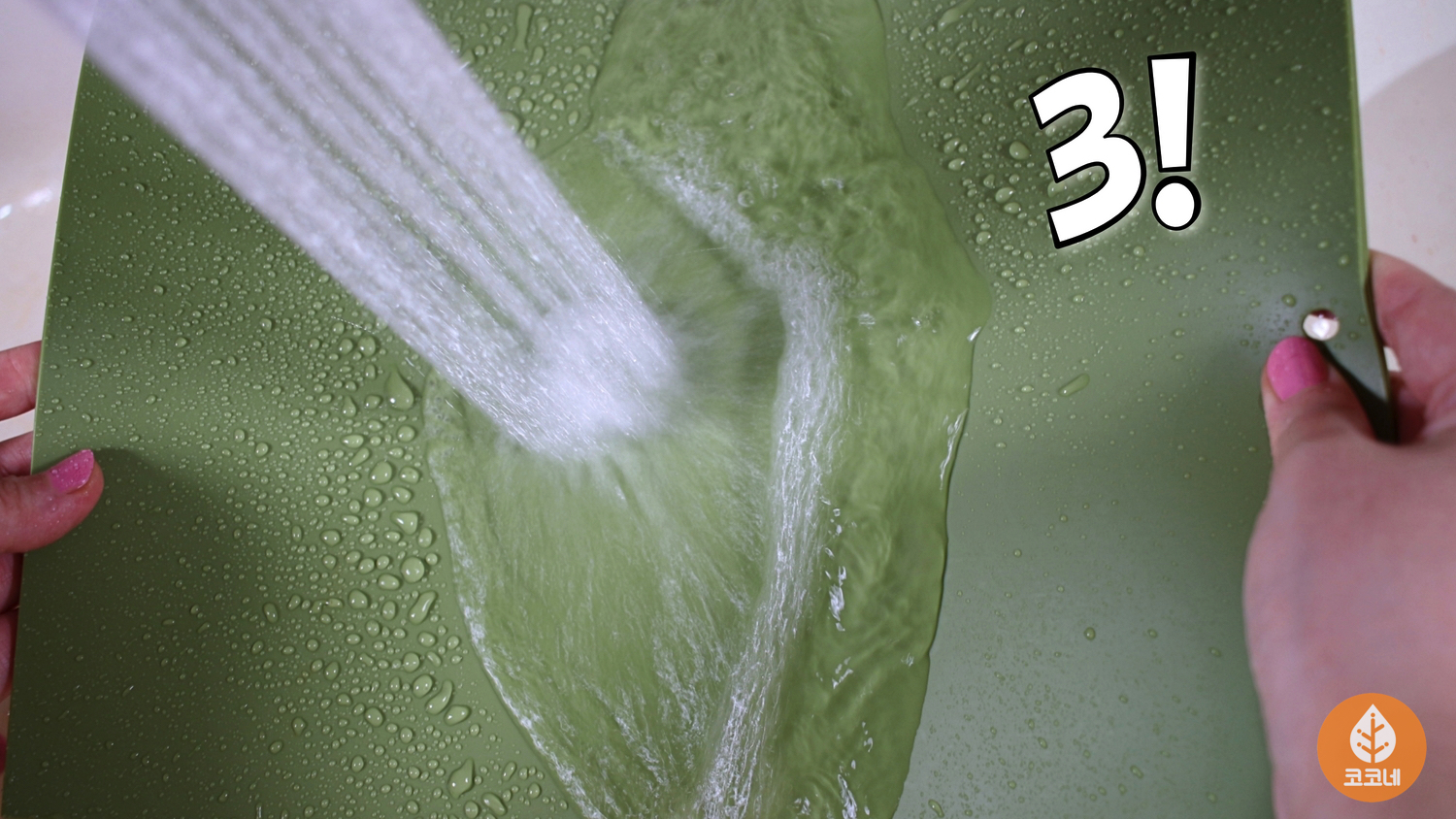 물방울이 도마 위에 코팅효과를 줘서