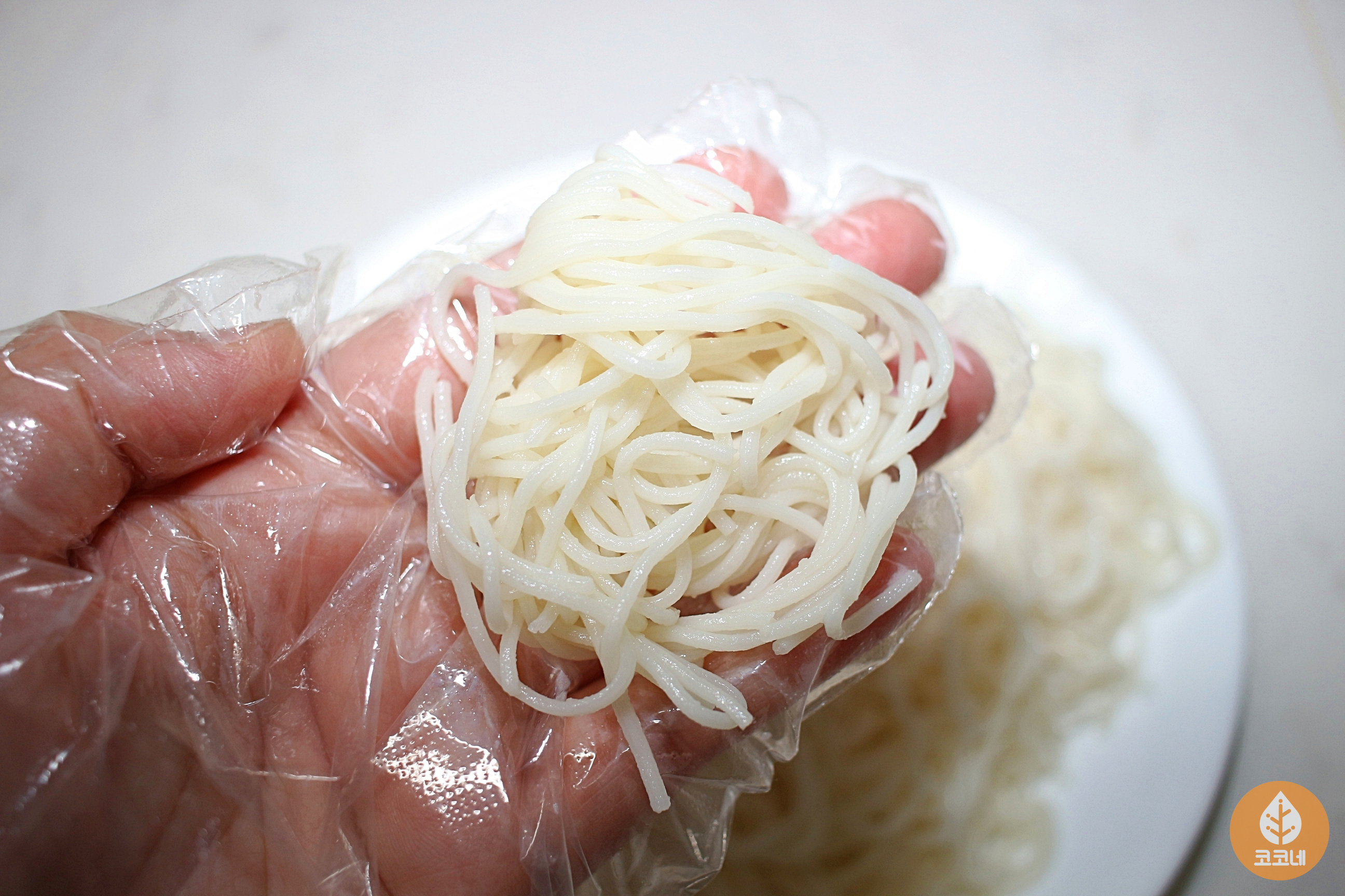 냉장고에 있던 삶은국수를 꺼내봤어요.