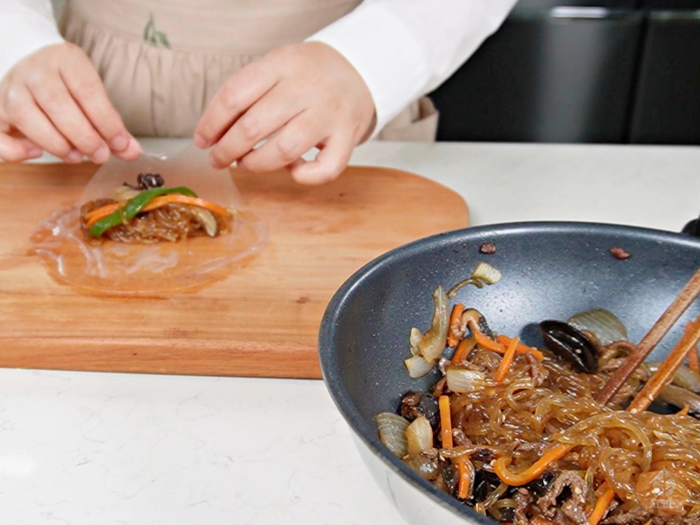 쫄깃 탱탱한 잡채와 쫀득 바삭한 라이스페이퍼의 조합은