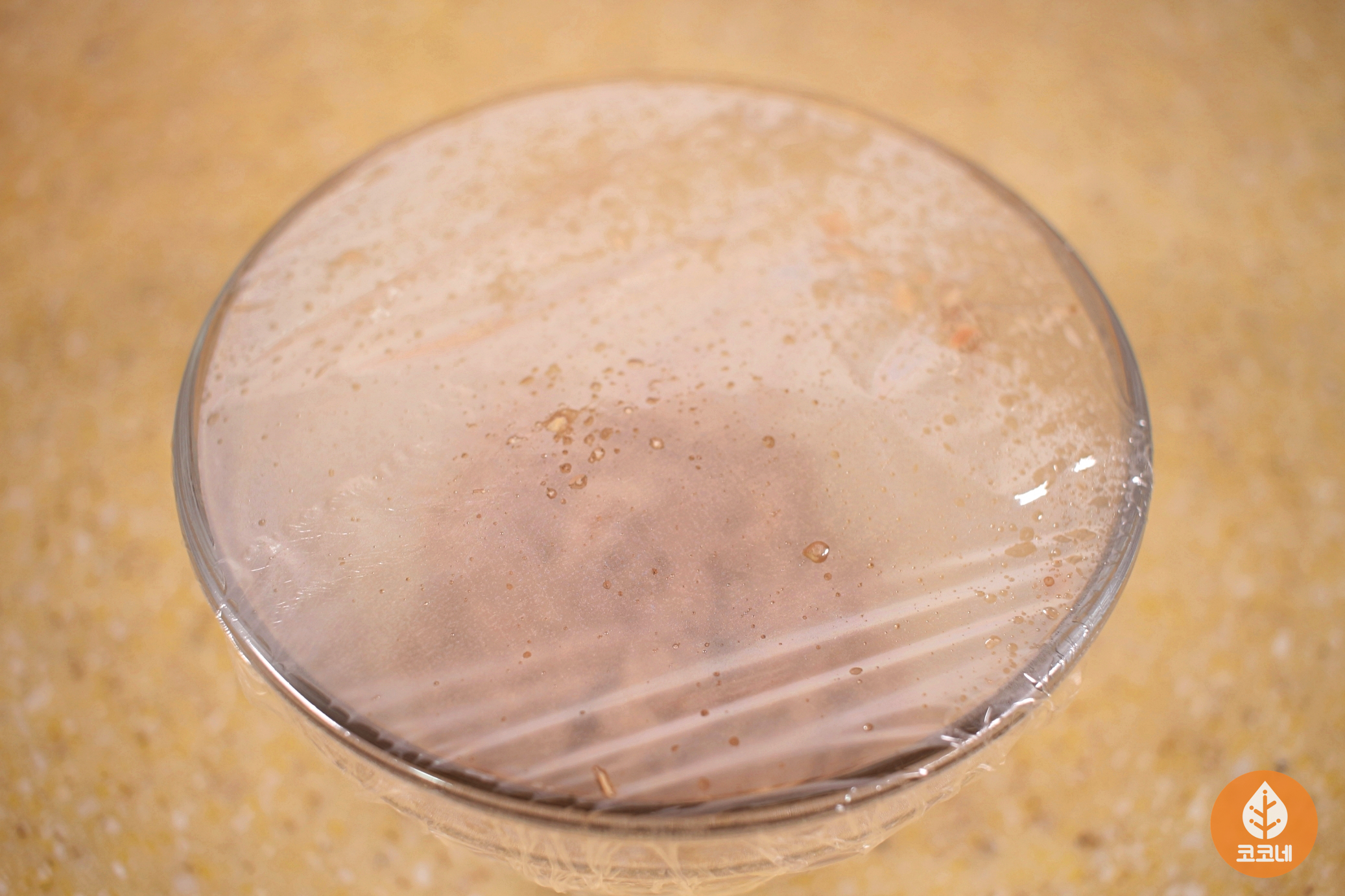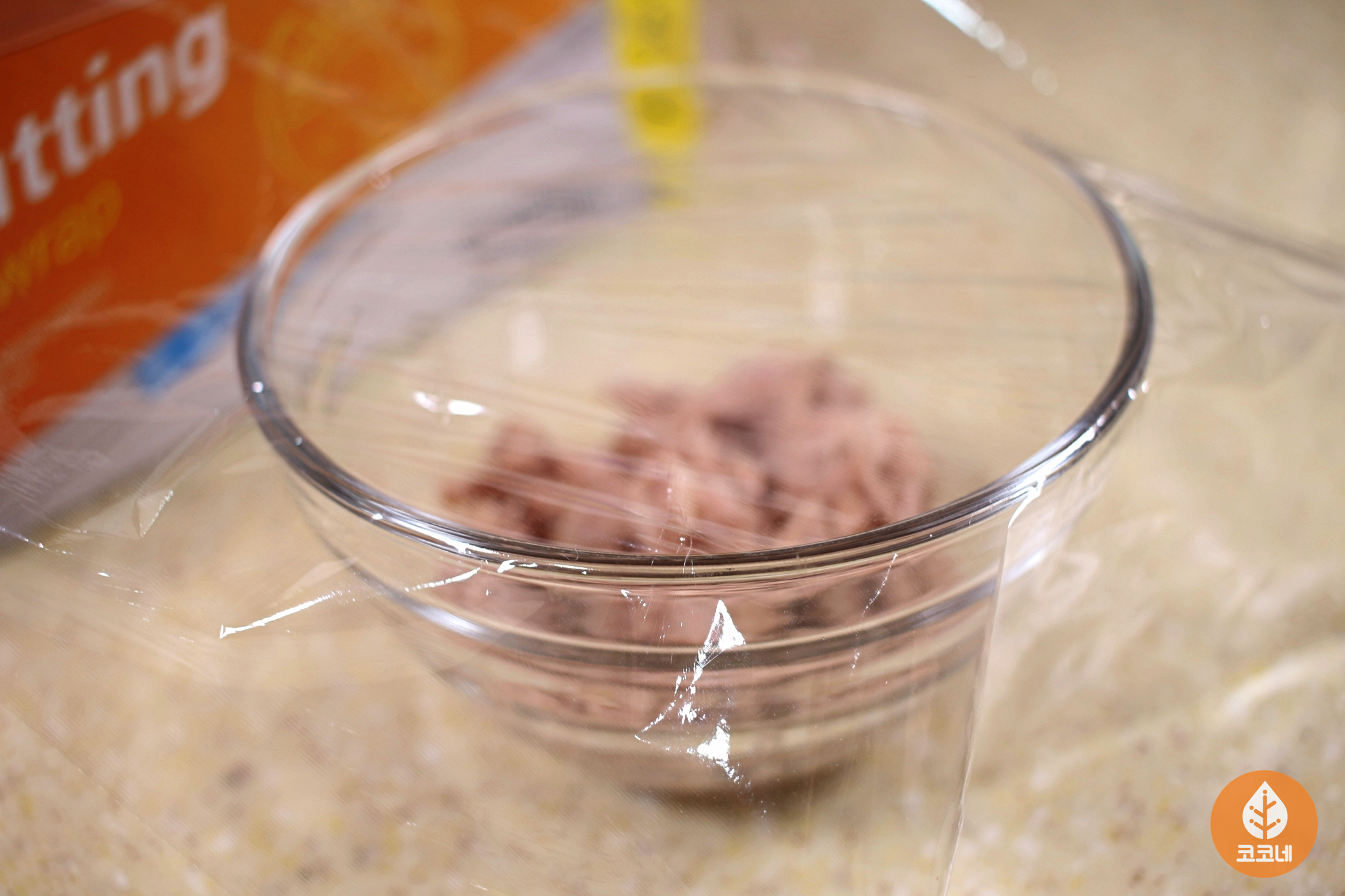 그다음 밀폐용기에 조리용 랩을 씌워주세요.