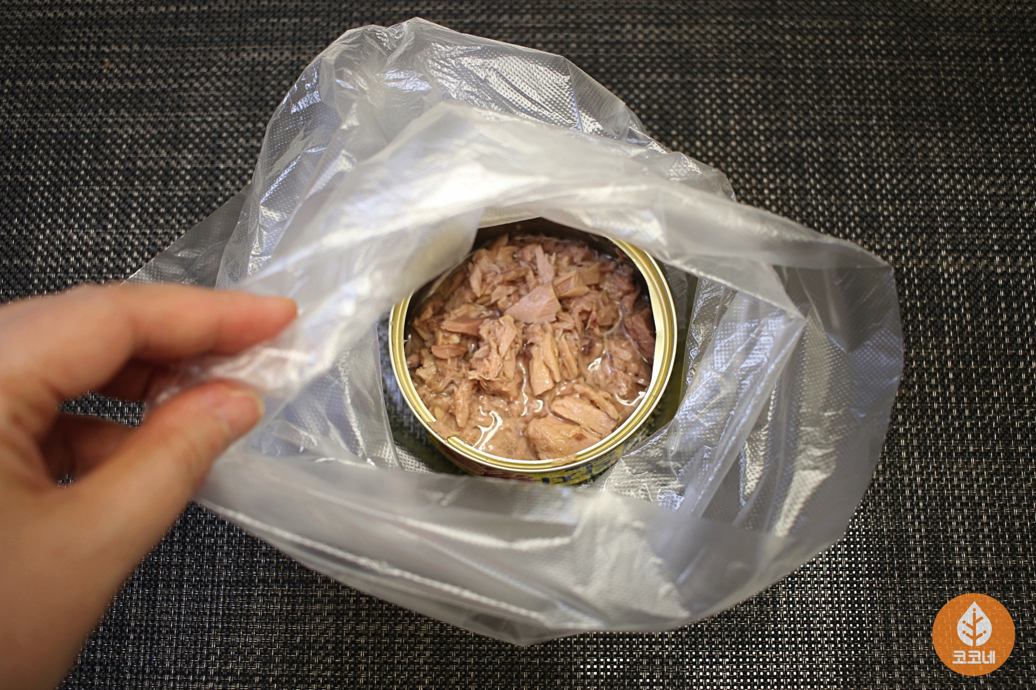 남은 참치캔을 비닐봉지에 넣거나