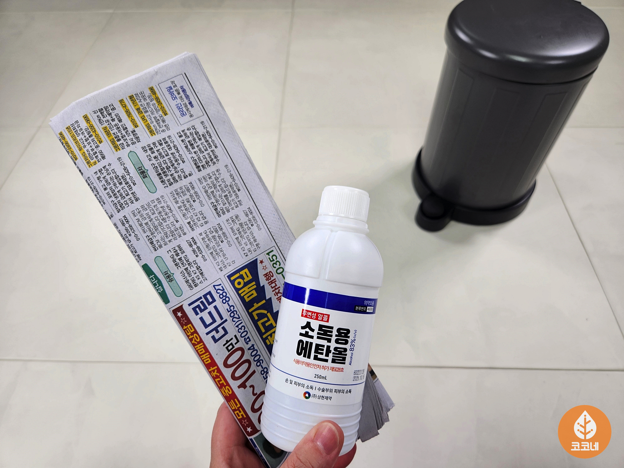 신문지에 소독용에탄올까지