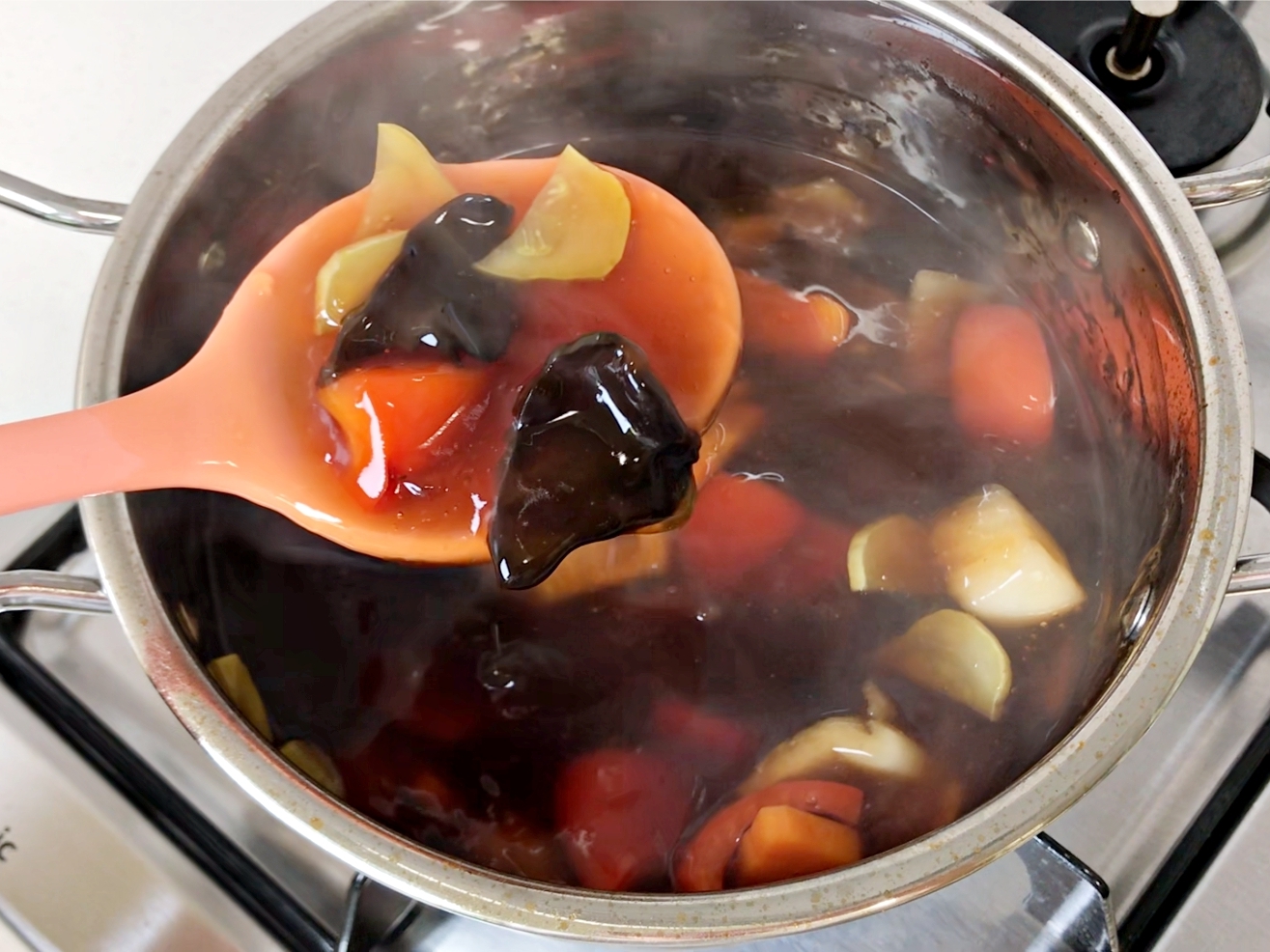 양파가 어느정도 익으면 전분물을 넣어서 농도를 맞춰주세요.