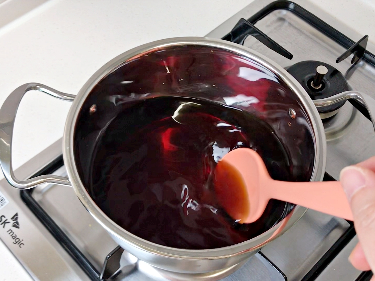 소스 베이스를 중불에서 끓여주세요.
