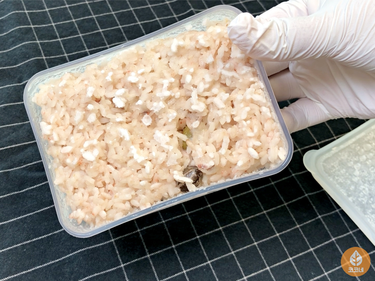 얼음이 녹으면서 냉동밥에 수분을 공급해서