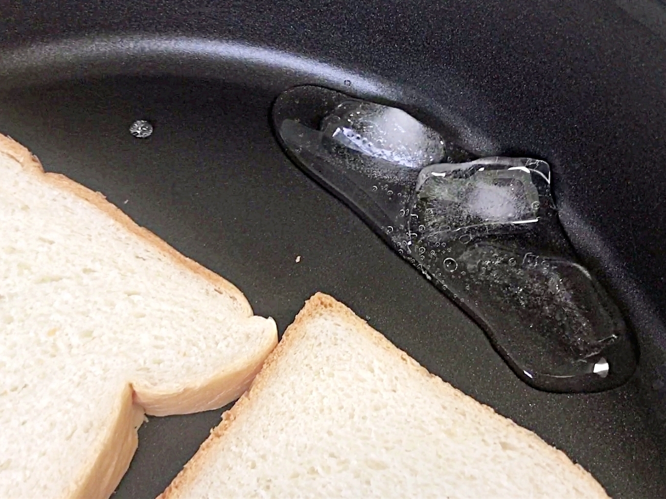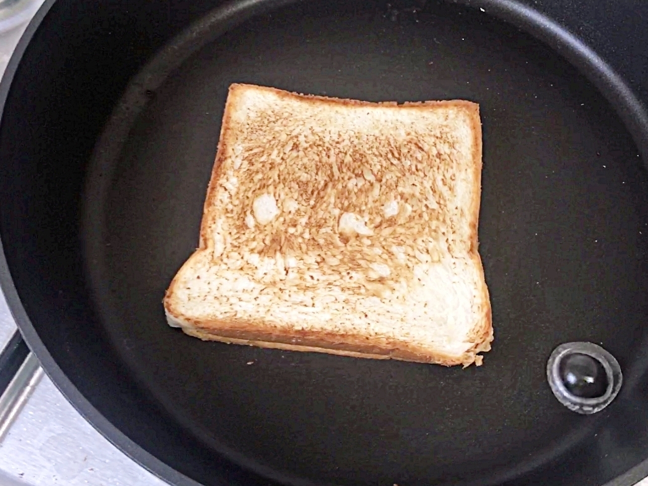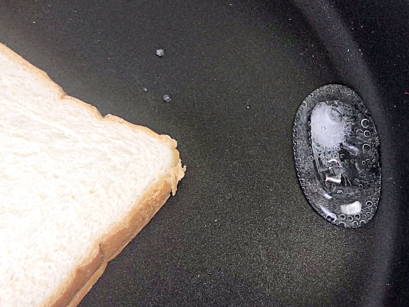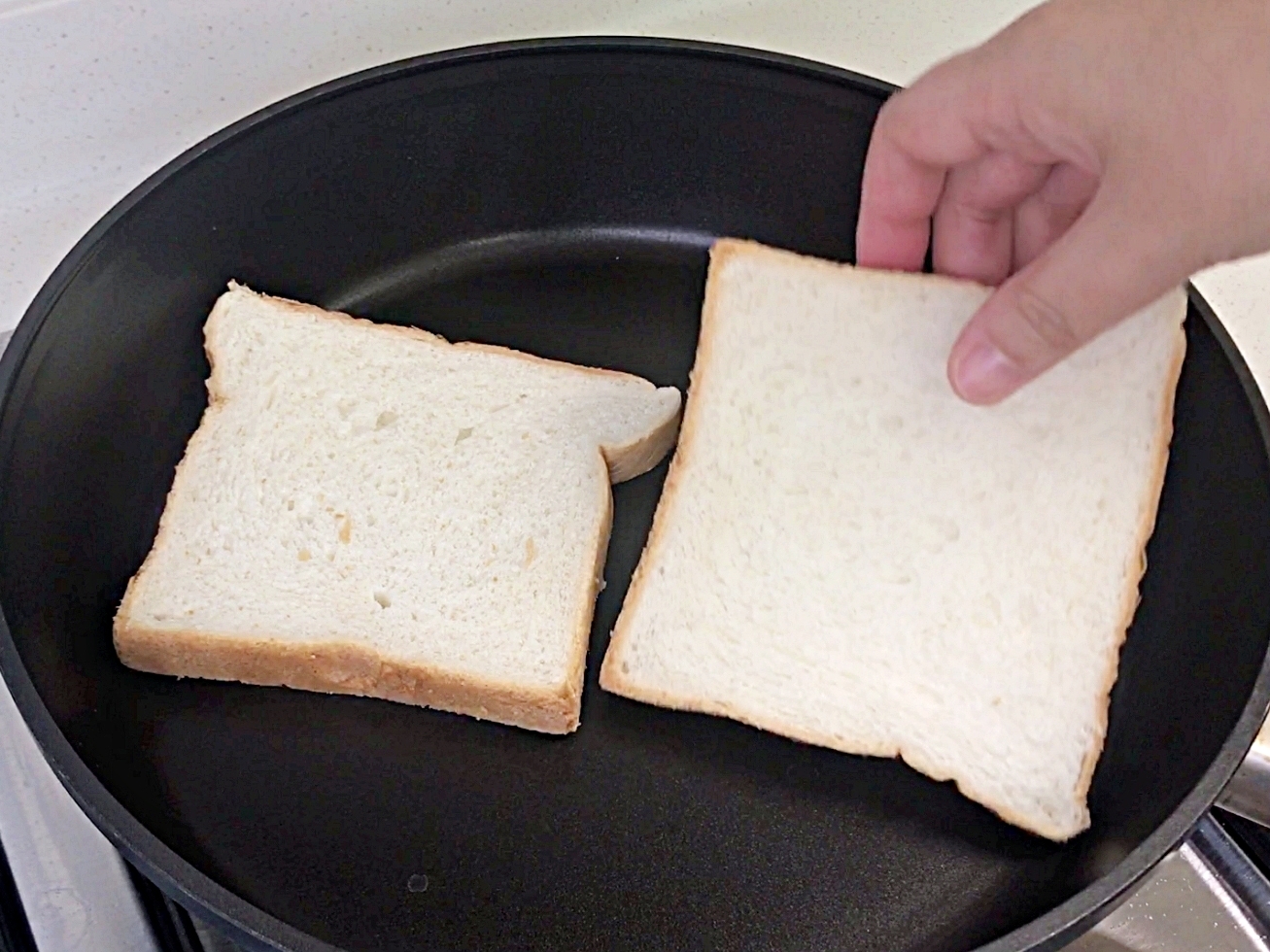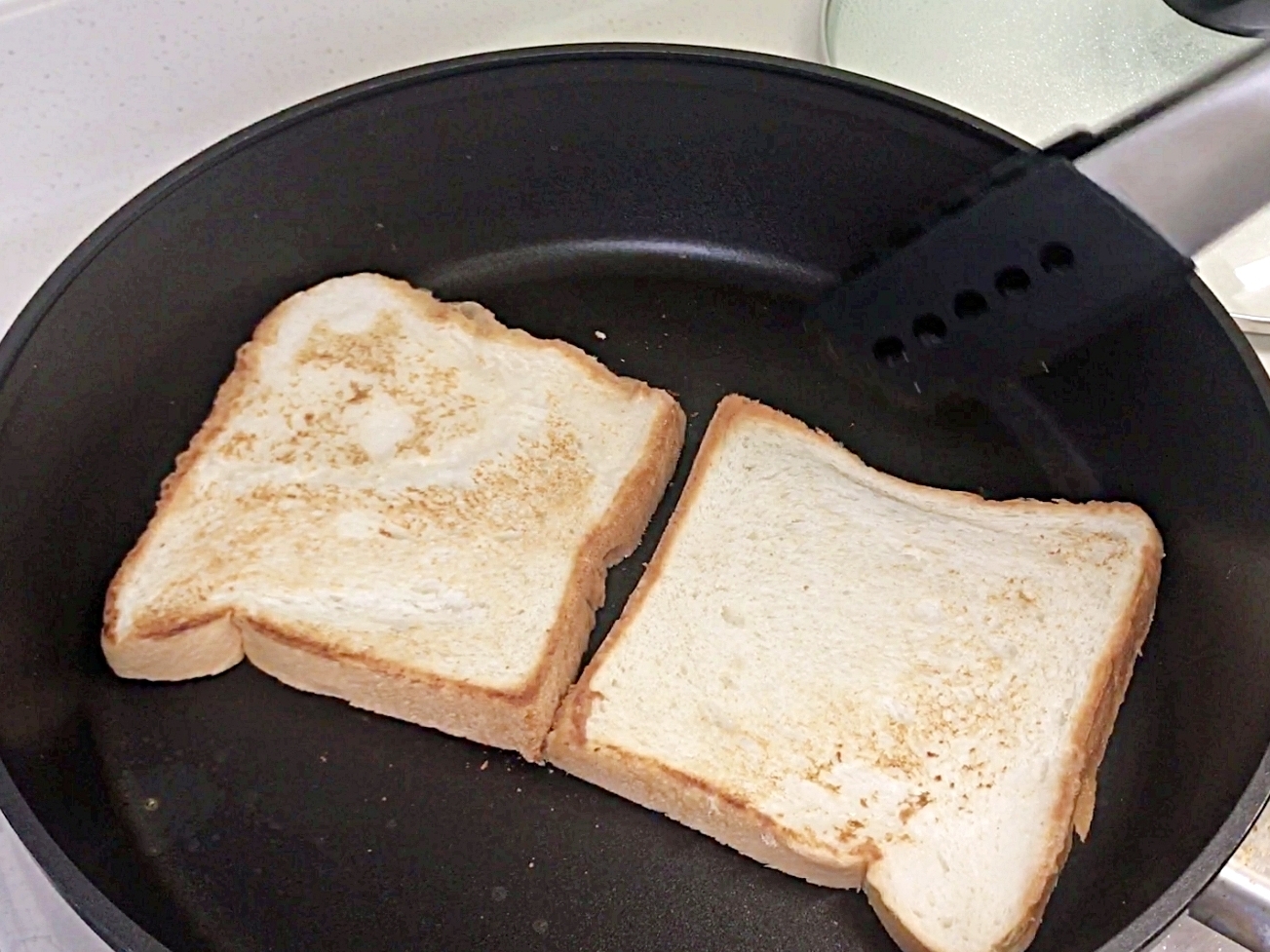 예열한 후라이팬에 냉동식빵을 올려주세요.