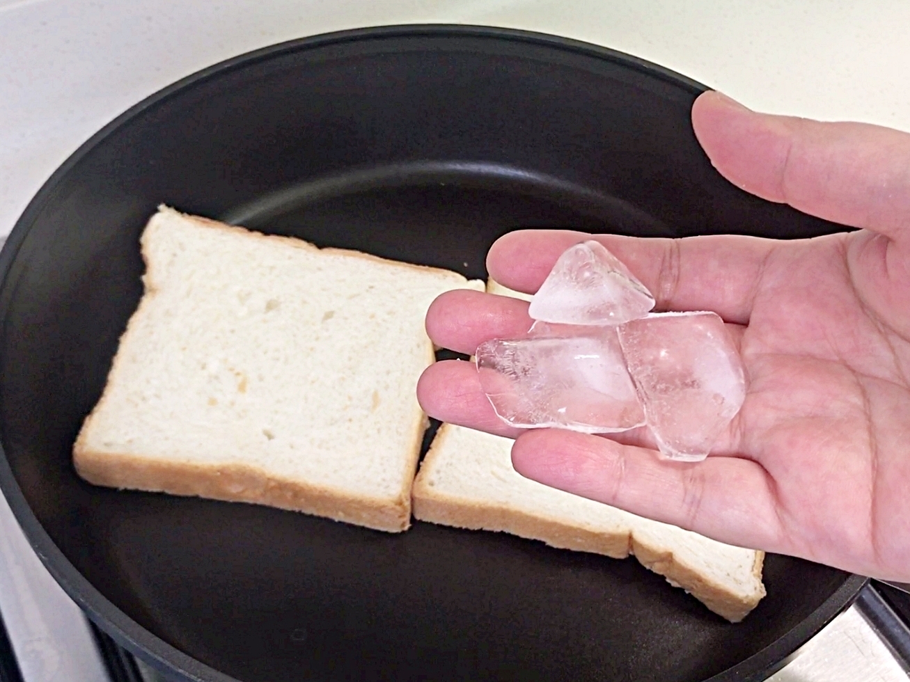 식빵 1쪽에 얼음도 1조각이면 되고요.