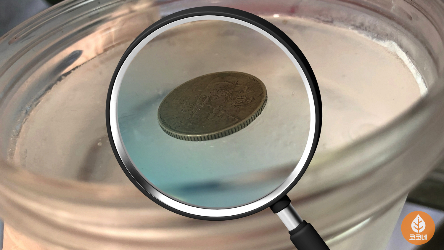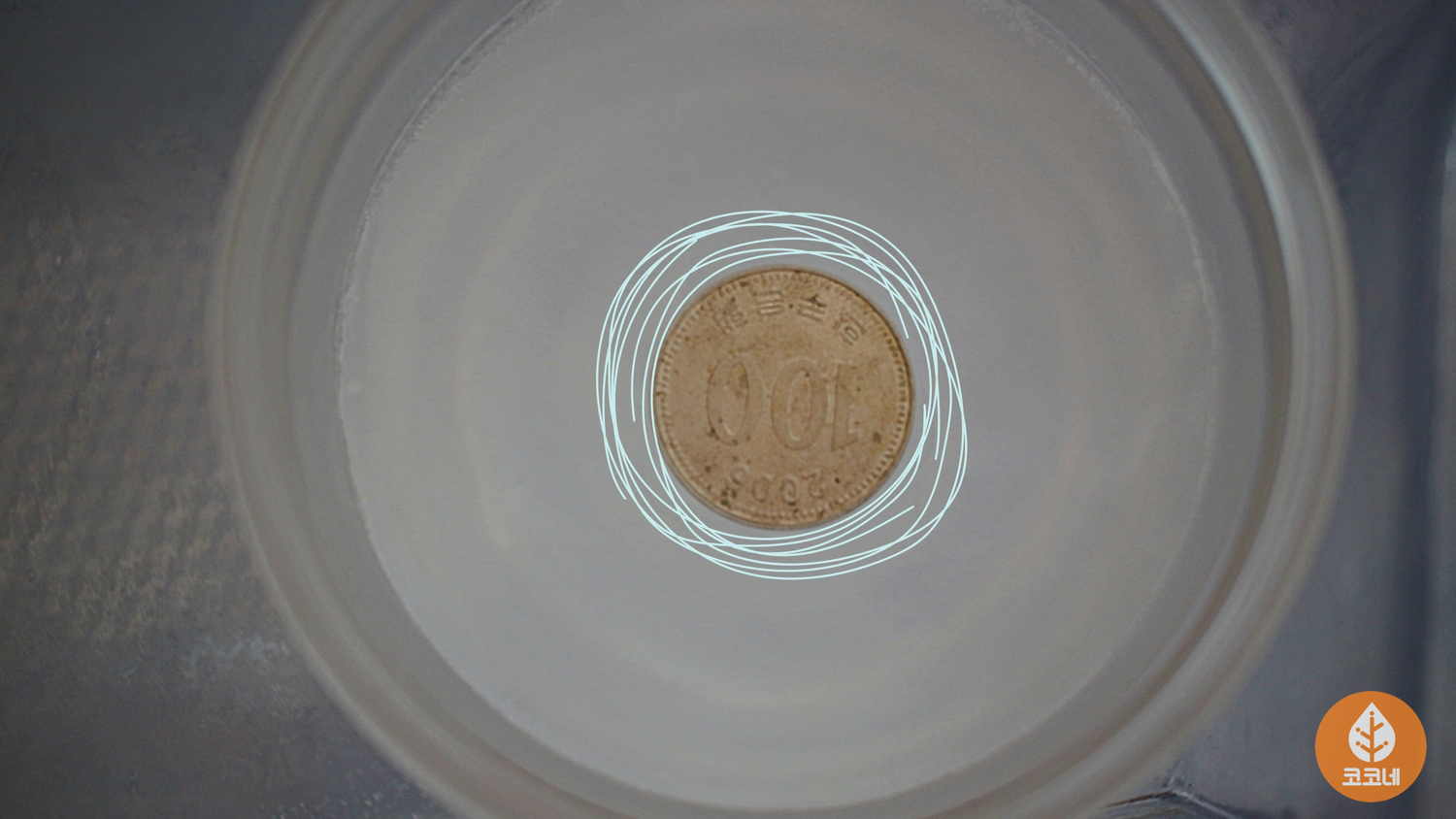 얼음 표면에 있던 동전이