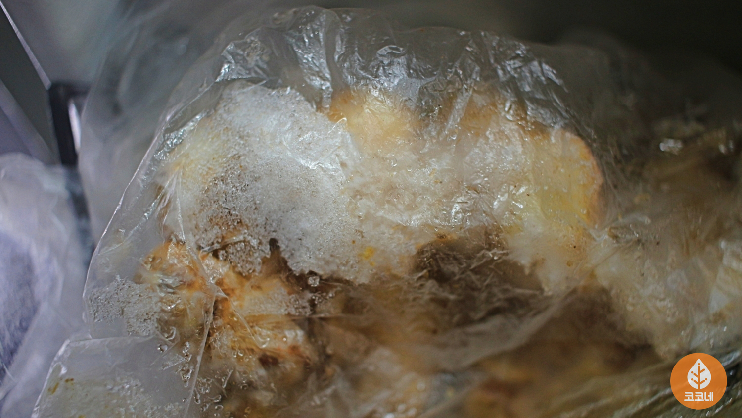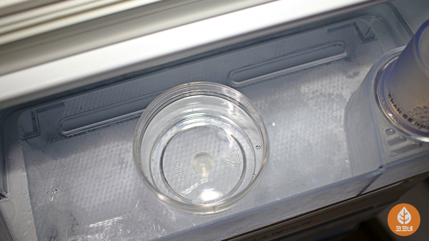 꽁꽁 언 용기를 냉동실 밖으로 꺼내면
