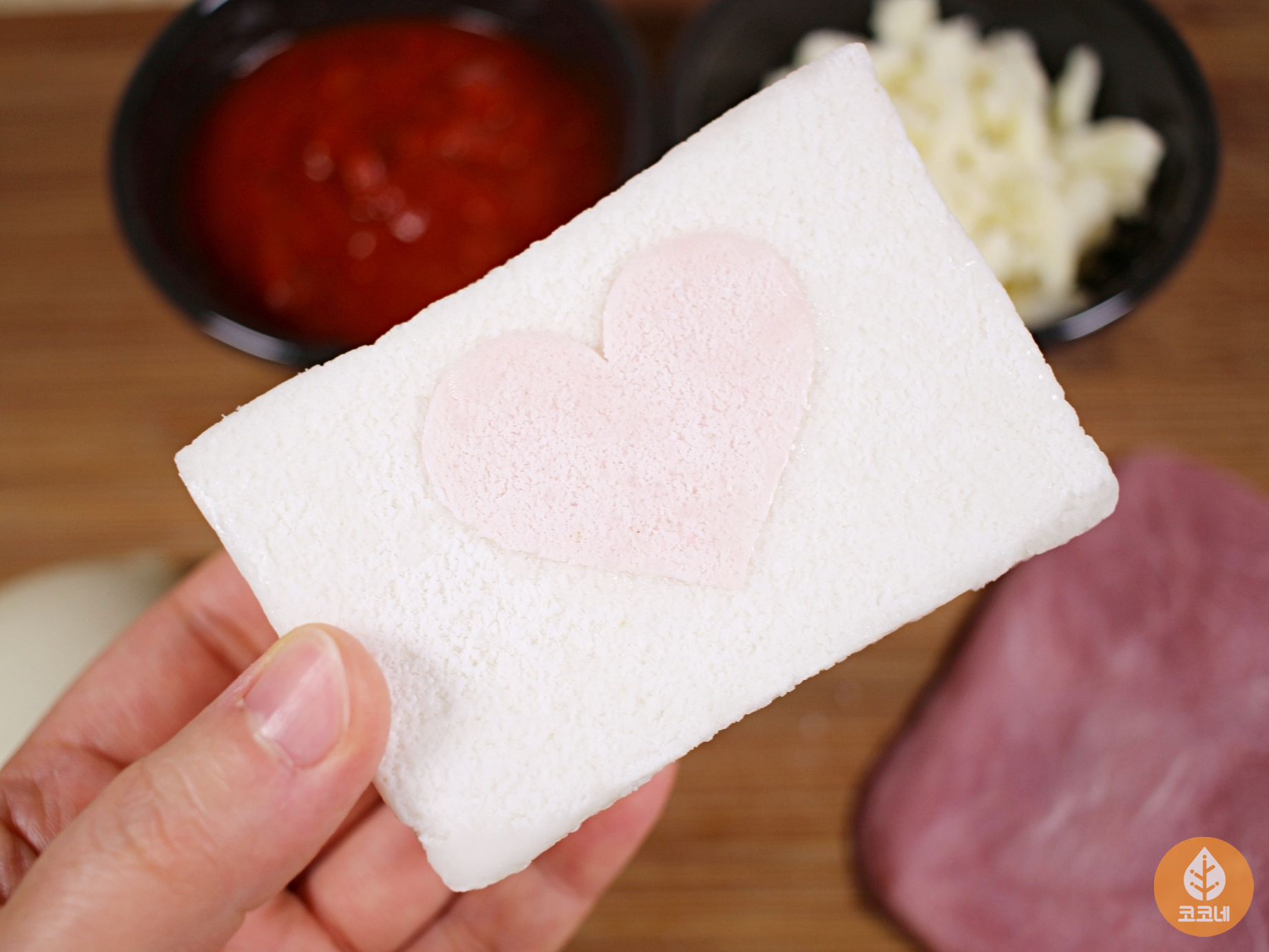 재료는 백설기, 양파, 햄, 토마토소스, 치즈 준비했어요.