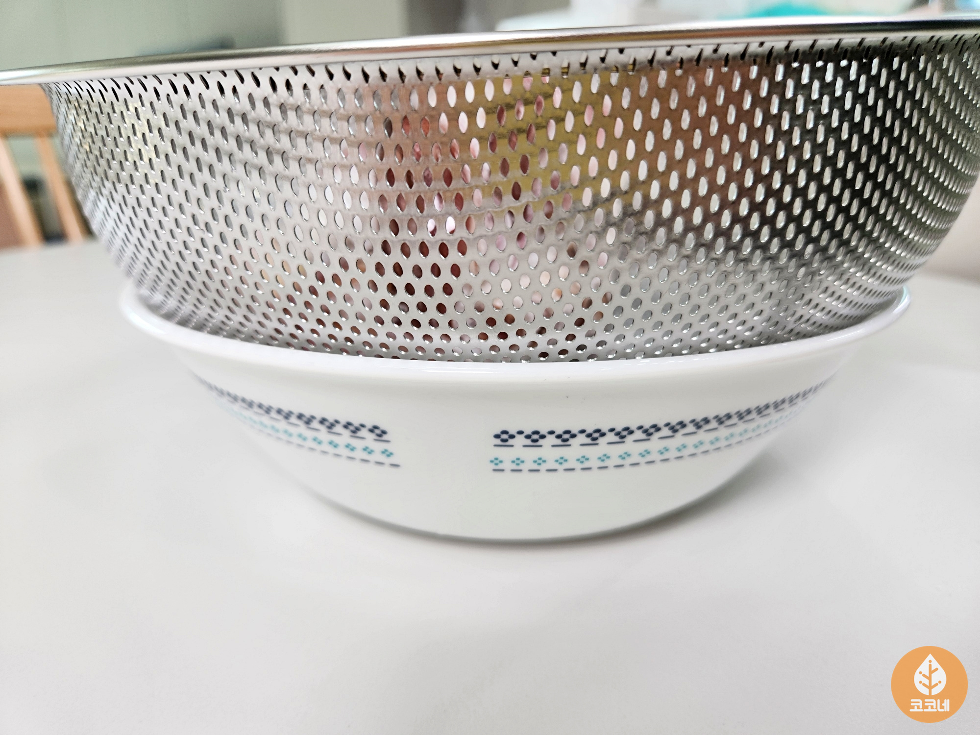 채반을 받쳐둔 그릇에 물이 고인게 보이시죠?