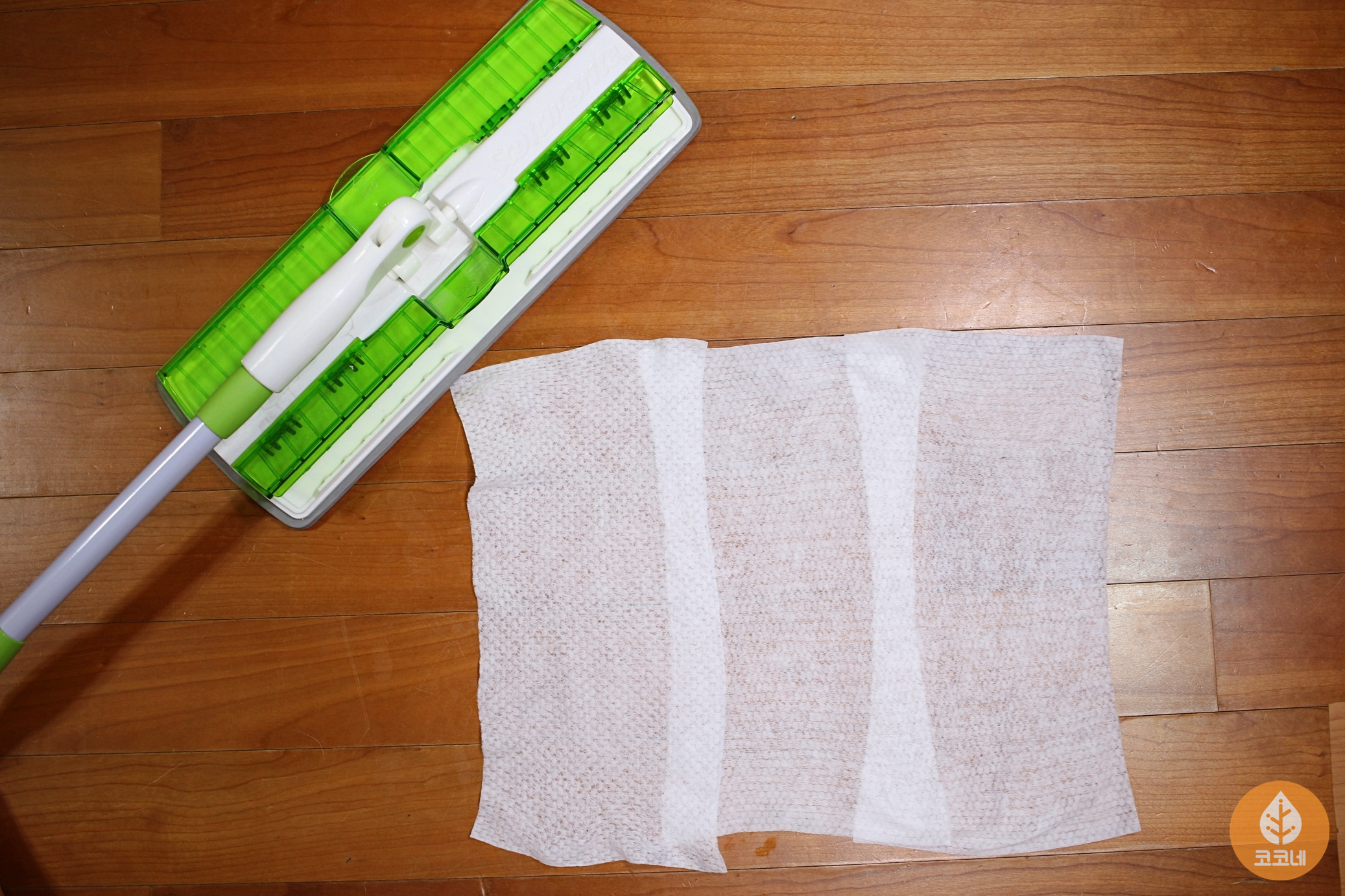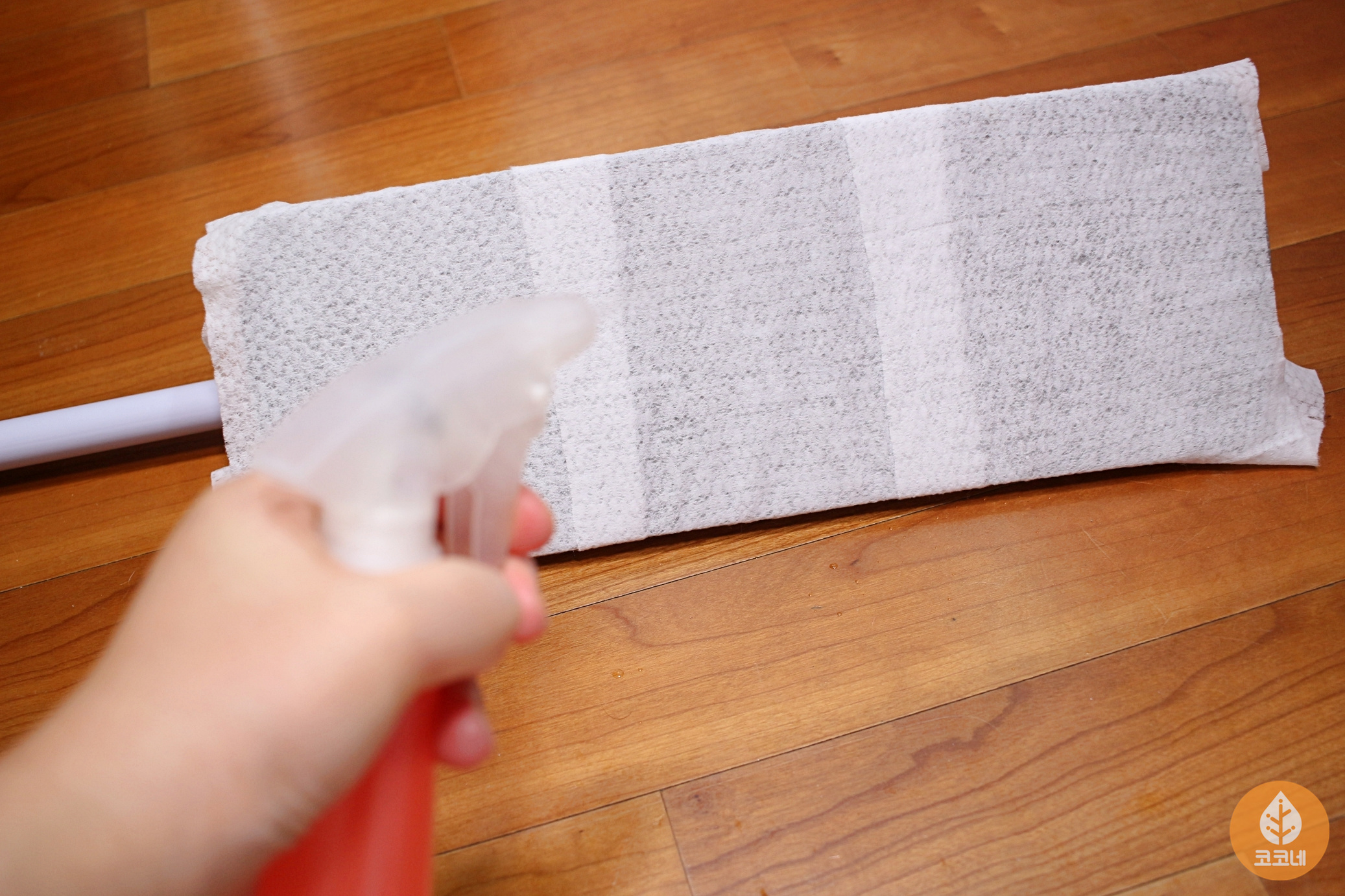 밀대에 청소용 패드가 아니라 물티슈를 끼우고,