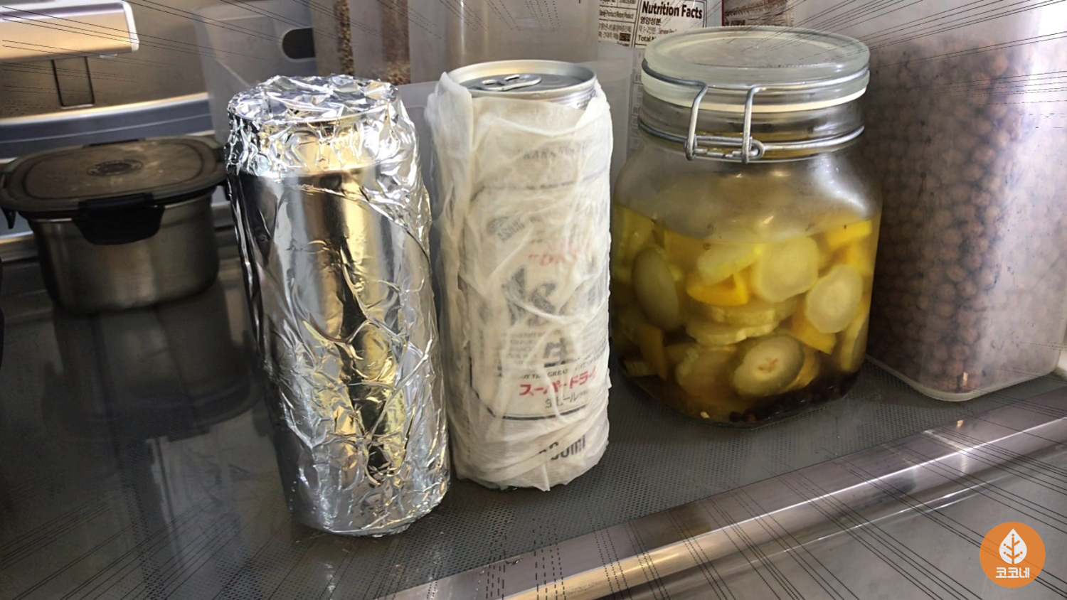 미지근한 캔음료을 감싸서 냉장고에 넣으면