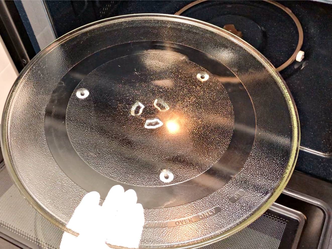 전자레인지에 들어있는 회전접시를 꺼내고요.