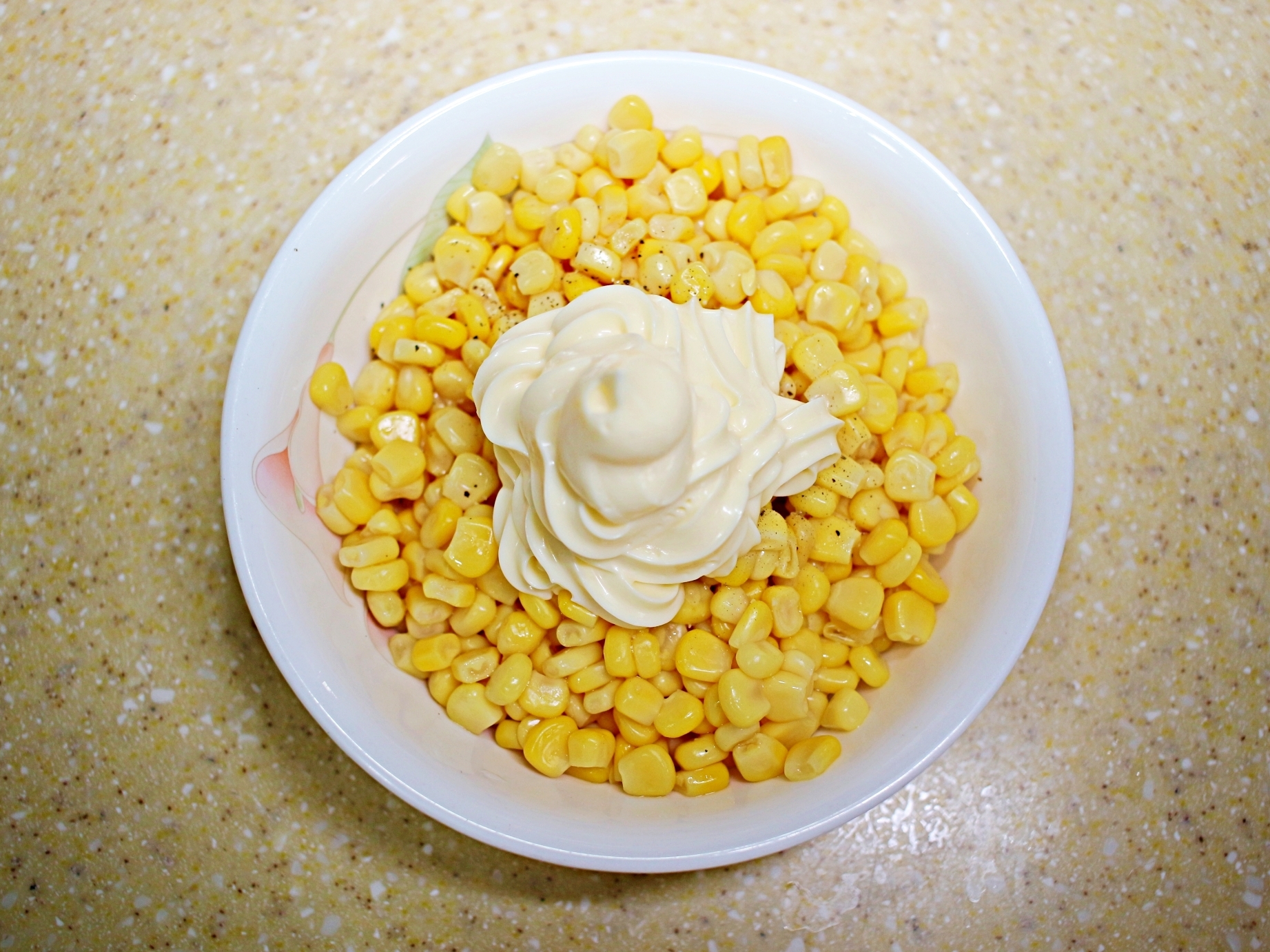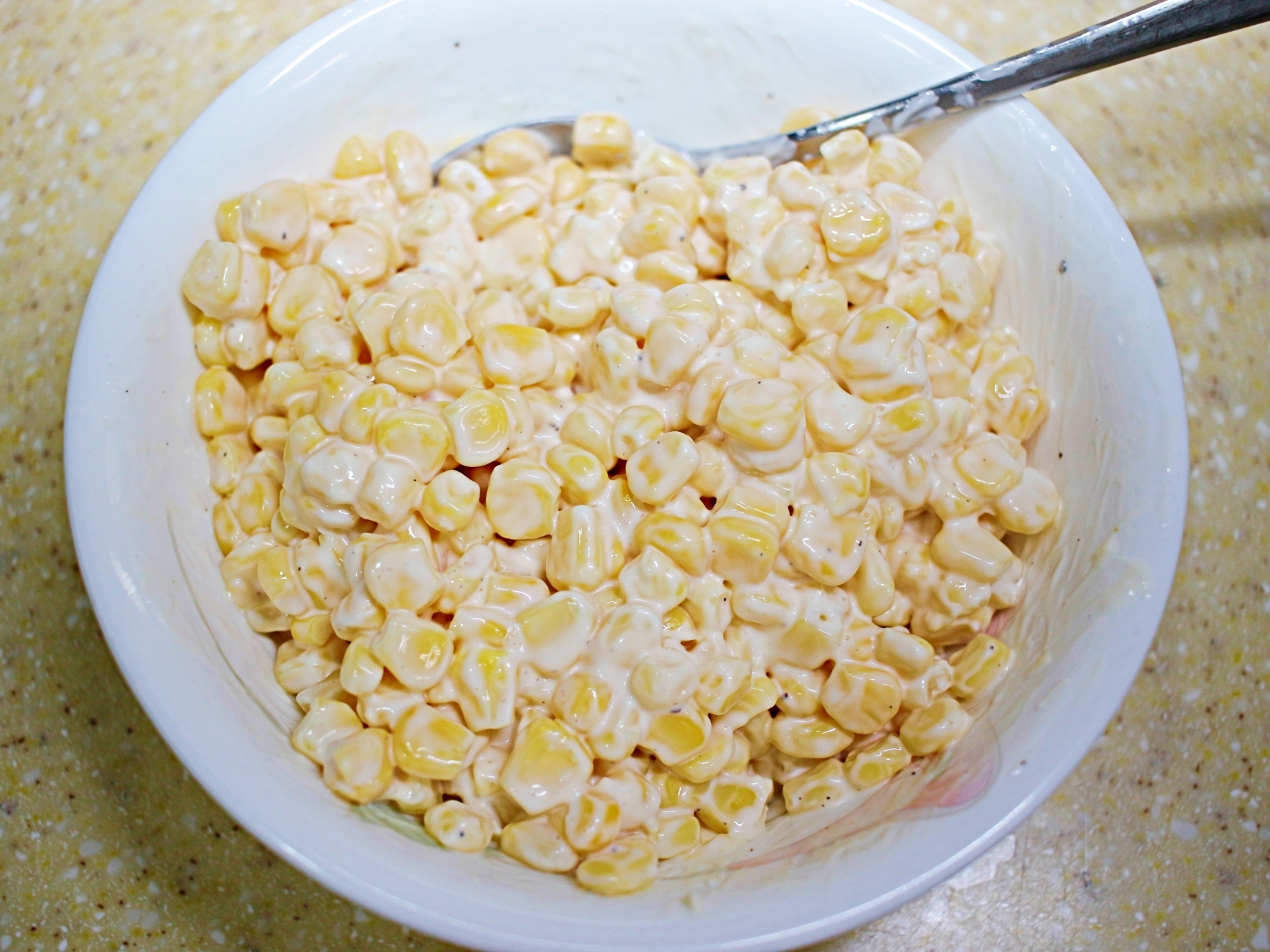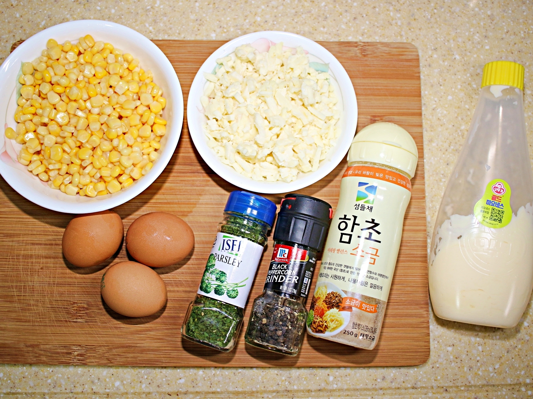 재료는 캔옥수수, 치즈, 계란, 마요네즈,