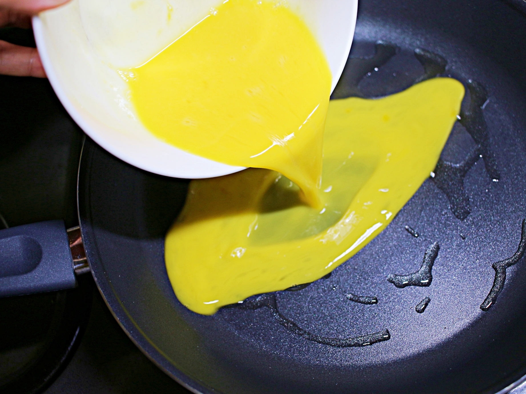 계란 3개 부드럽게 풀어주세요.(캔옥수수 1캔 기준)